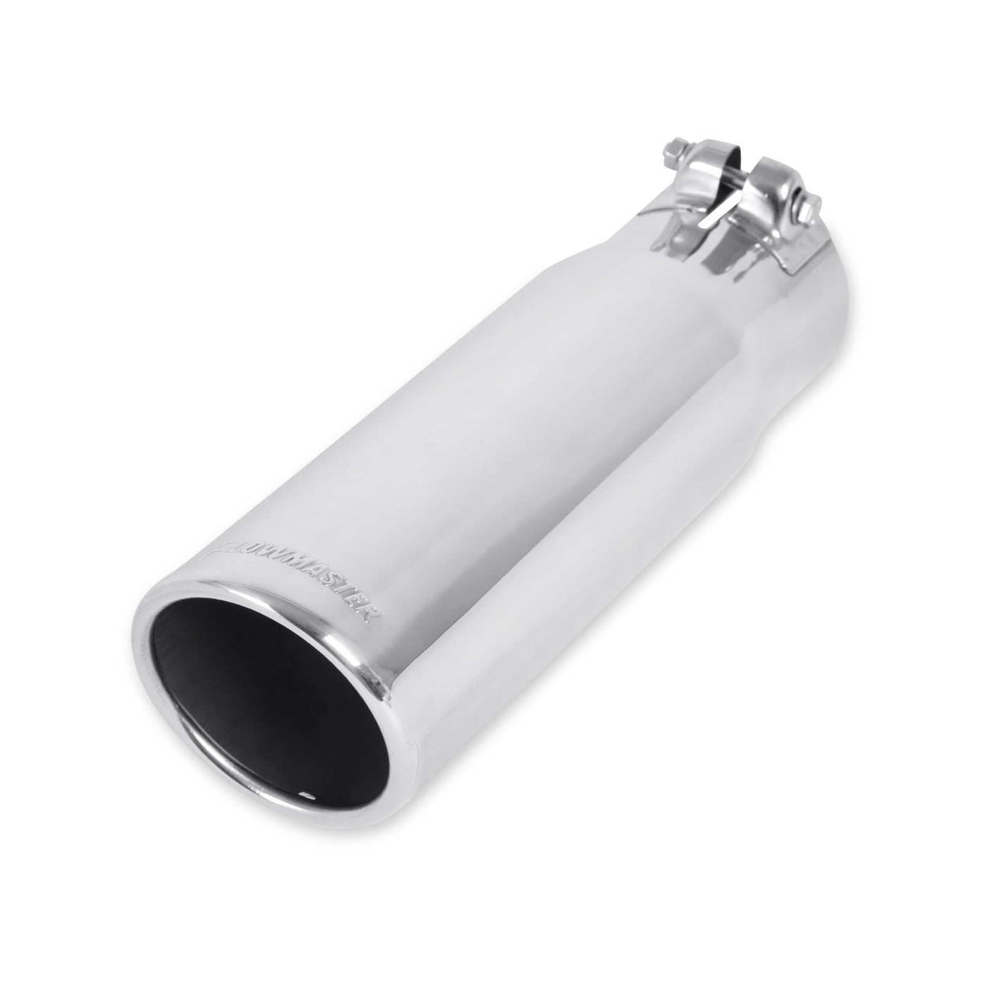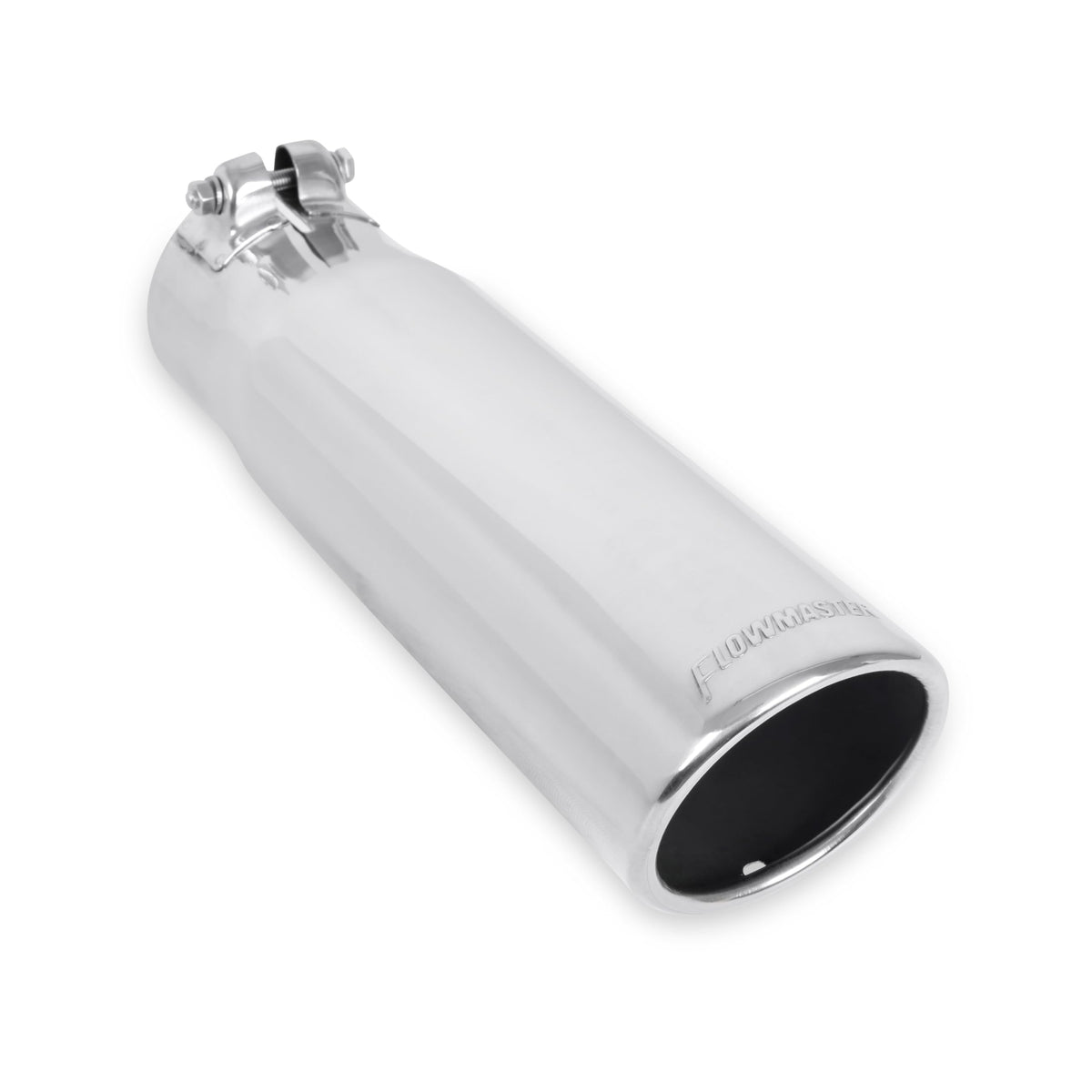 Q: How do I maintain the polished finish of the Flowmaster exhaust tip?A: To maintain the polished finish of the Flowmaster exhaust tip, regularly clean it with mild soap and water. Avoid abrasive cleaners that could scratch the surface.