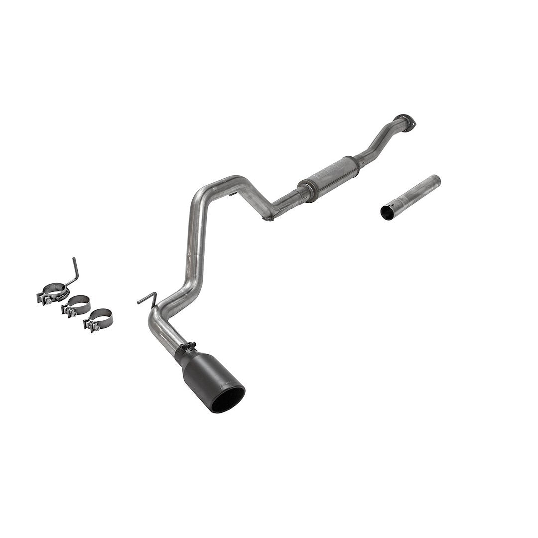 Q: What kind of sound can I expect from this exhaust system?A: The FlowFX performance muffler delivers a deep, moderate performance tone that enhances your vehicle's exhaust sound without being overly aggressive.