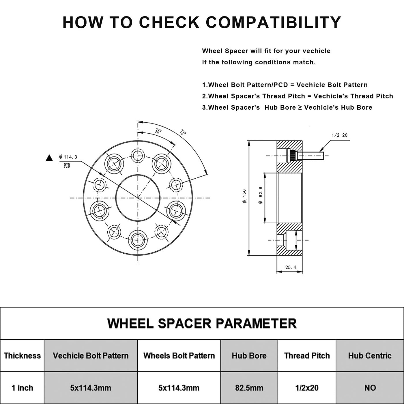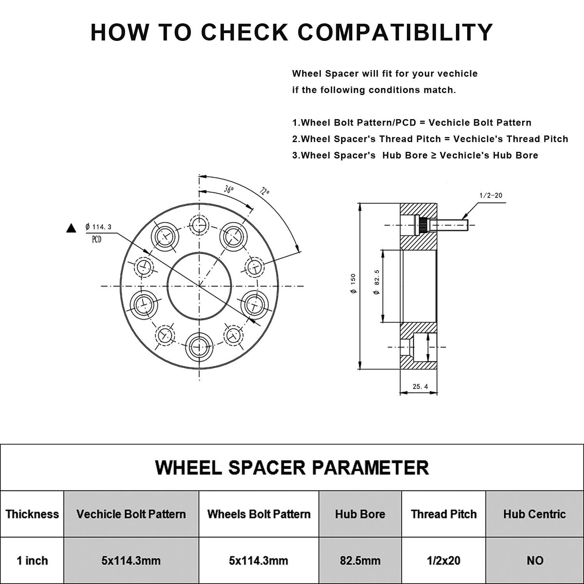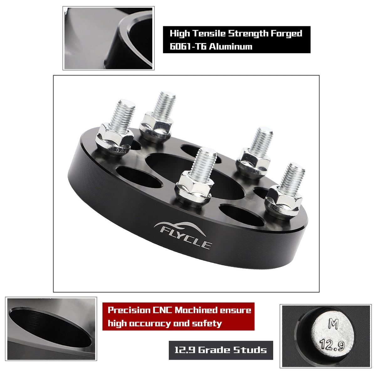 Flycle 1 Inch 5X4.5 Wheel Spacers For Tj Yj, 4Pcs 5X114.3Mm Wheel Spacer For Xj Kj Kk Zj Ranger Explorer Mustang Edge 1/2-20 Studs With 82.5Mm Bore