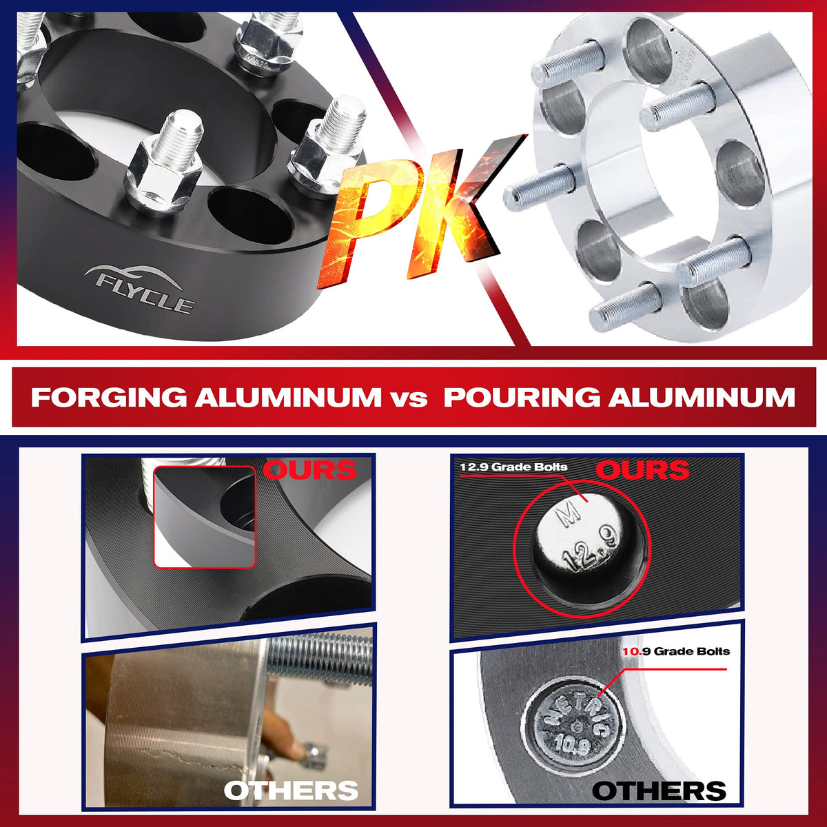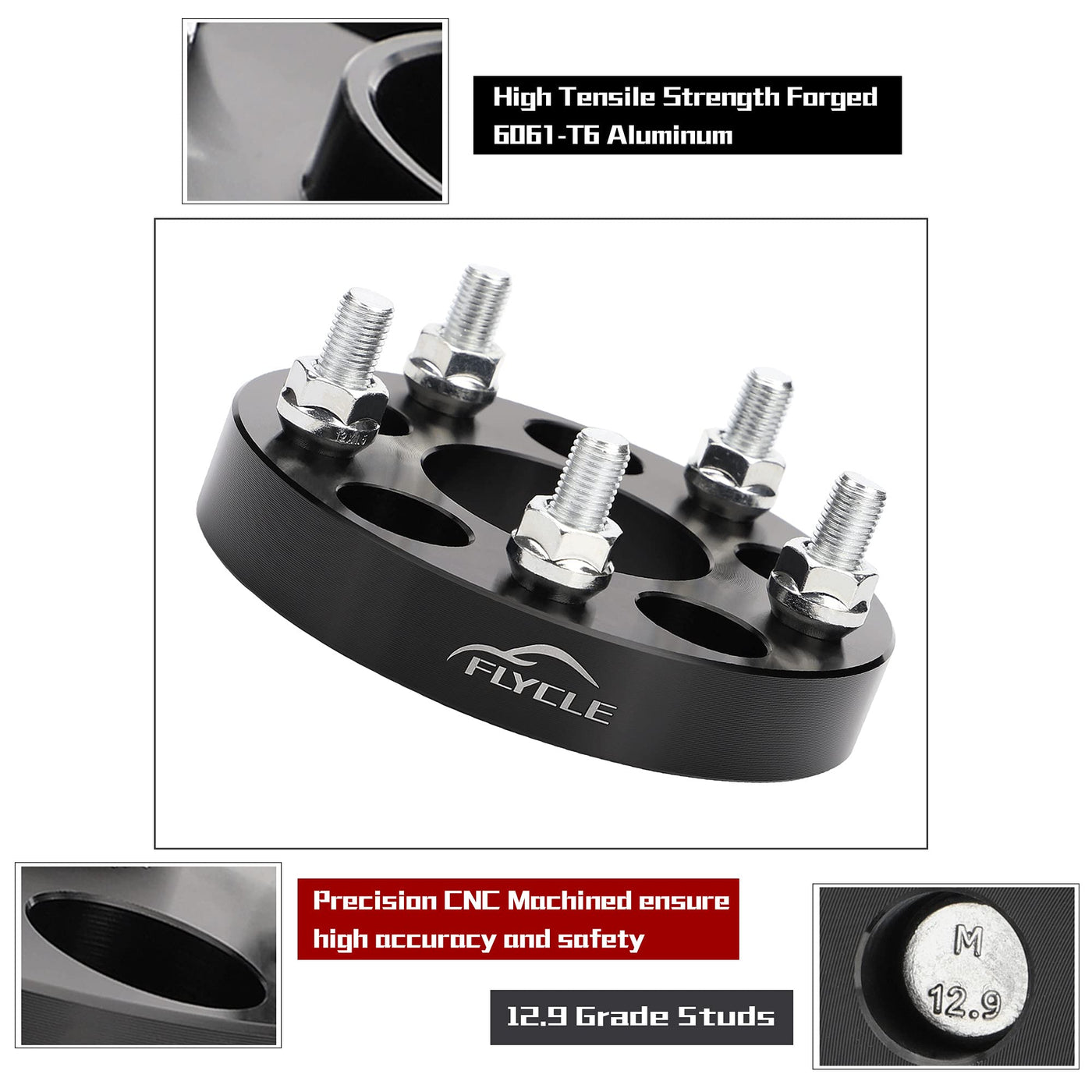 Q: What materials are used in the construction of these wheel spacers?A: The FLYCLE wheel spacers are forged from 6061-T6 aluminum alloy, known for its strength and durability. The spacers undergo CNC automatic processing and surface anodic oxidation, ensuring high precision, stability, and enhanced corrosion resistance.