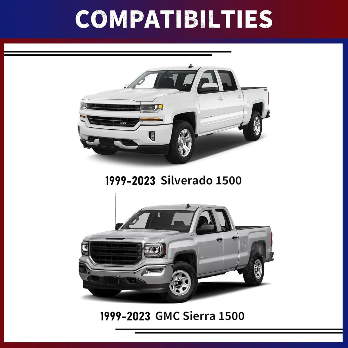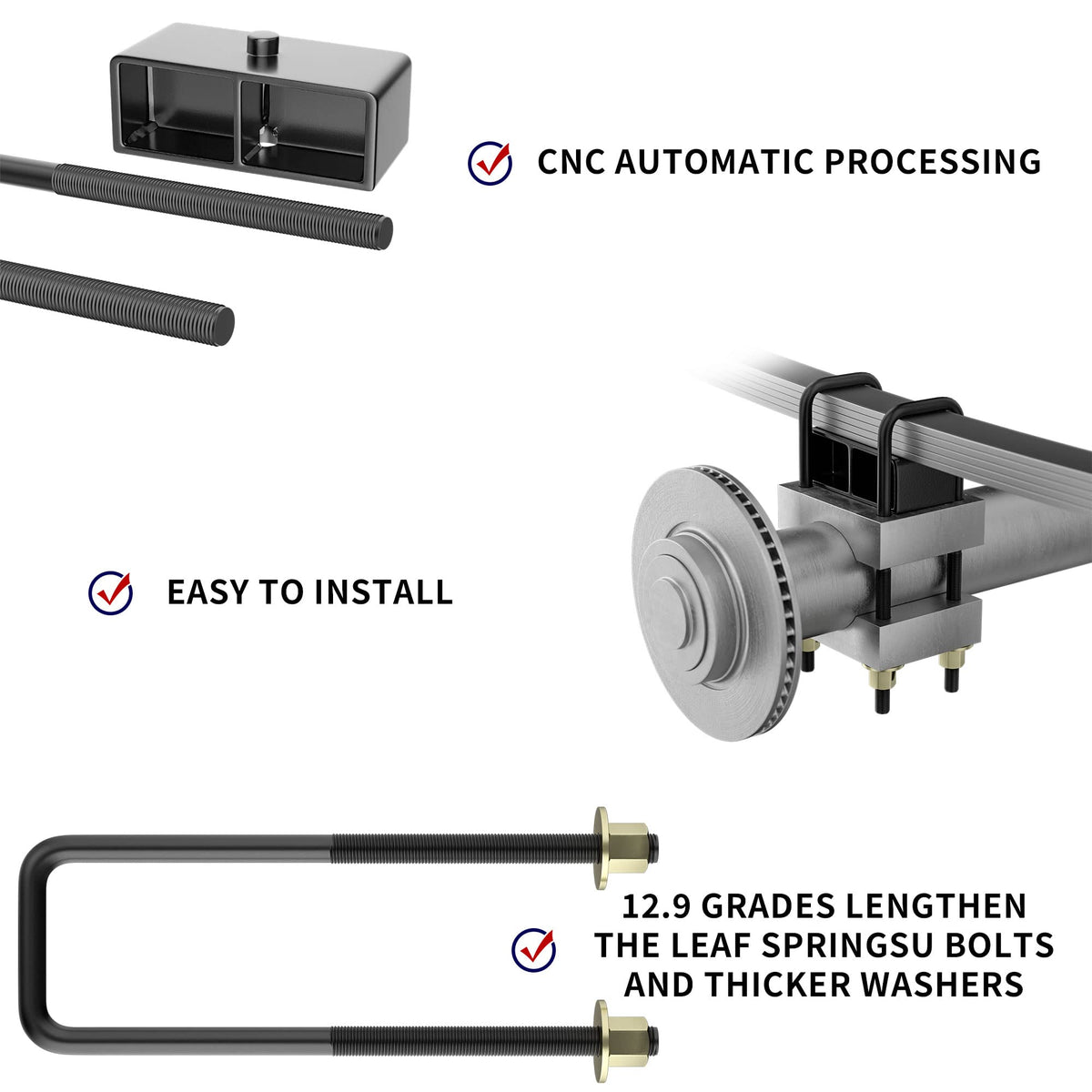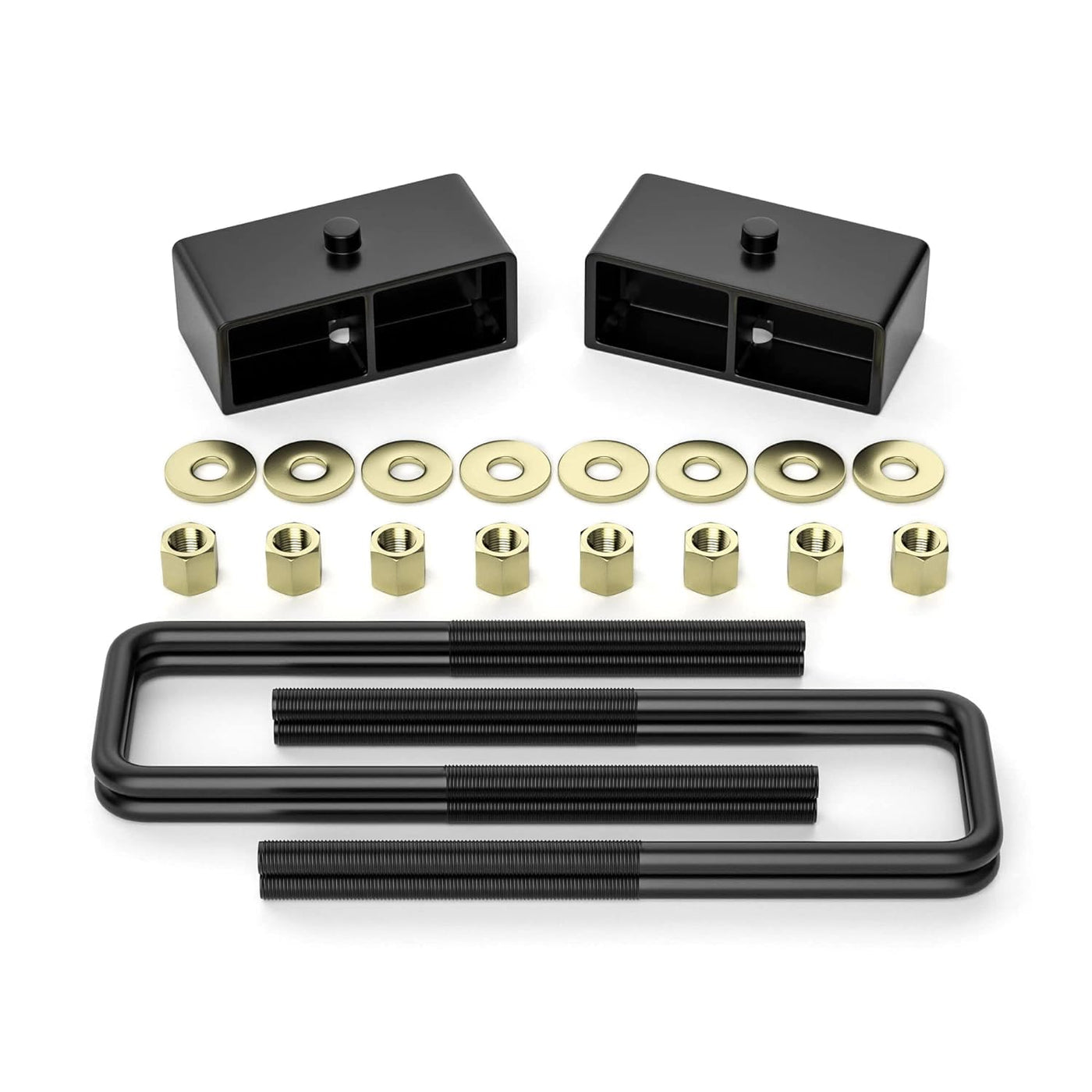 FLYCLE 2 inch Rear Lift Blocks for Silverado Sierra 1500, 2'' Rear Leveling Kit Extended Square U-Bolts Compatible with 1999-2023 Silverado 1500 Sierra 1500