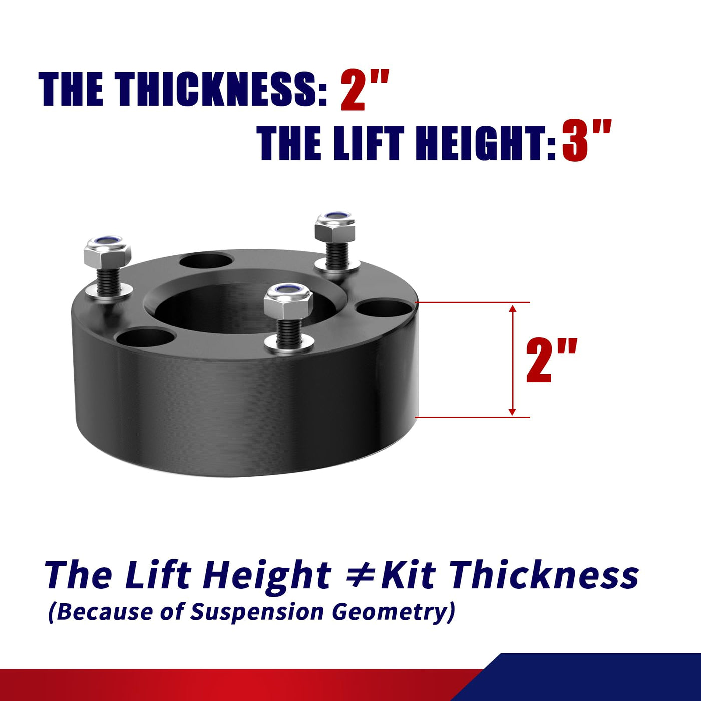 Lift 3 inch Front Leveling Kit : Pls note that the leveling kit's thickness less than 3 inch because of suspension geometry,the ratio between lift height and kit thickness is not 1:1, but it will lift the truck to a true 3 inch | Application : Compatible with 2007-2024 Silverado/Sierra 1500 | Aggressive Look : Once you install it on your truck,it will give your truck a cool look.Accurate numerical control precision and high quality, ensure your driving safe and comfortable | Process and Material : Forged from 6061-T6 aluminum alloy,CNC automatic processing,surface anodic oxidation and heat treatment,not only ensure high precision and stability,but also enhance the hardness and corrosion resistance of the material,The product itself is also equipped with 12.9 class studs | Brand Services : All FLYCLE Leveling kits are covered 2-year with worry-free after-sales service