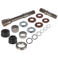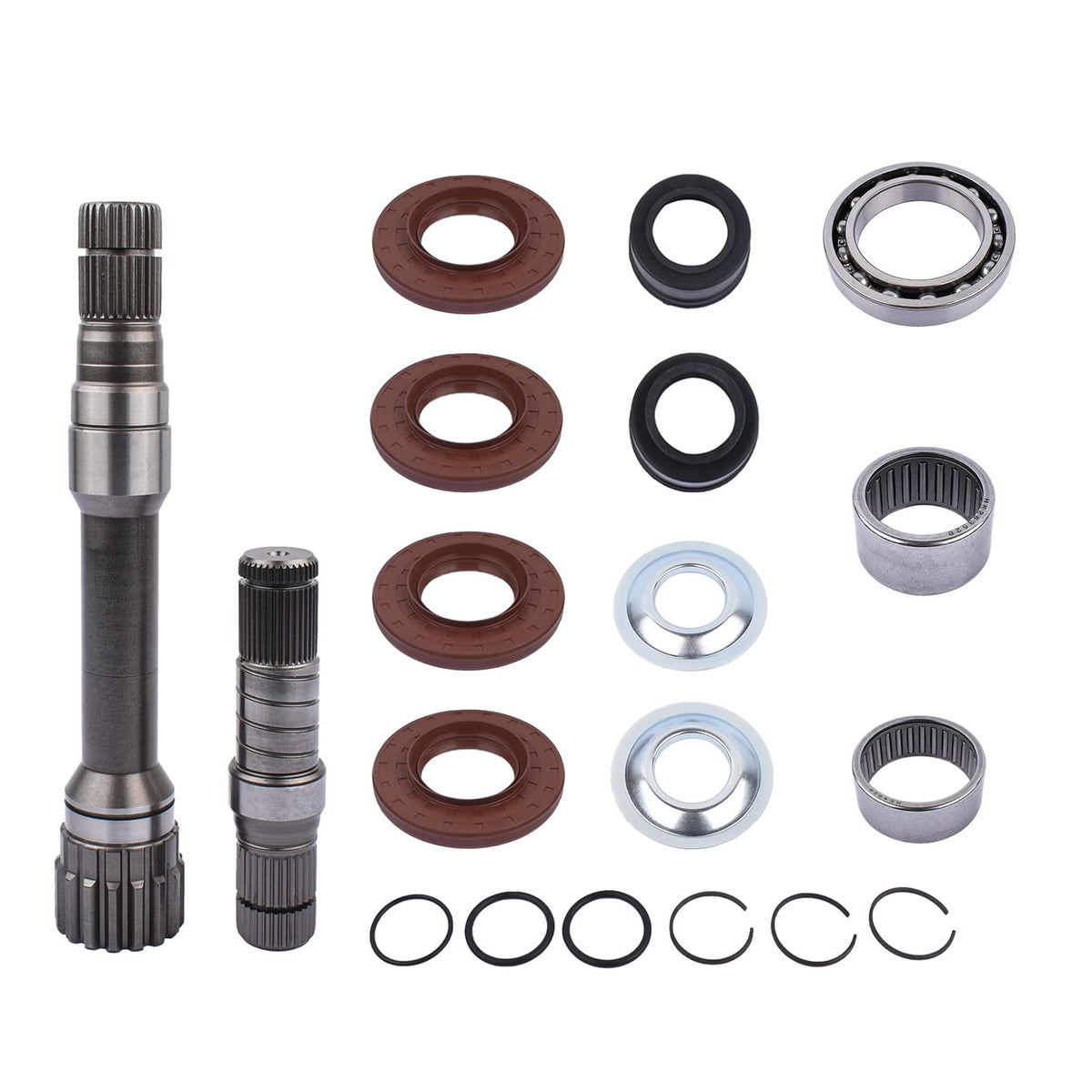 Q: What parts are included in the intermediate shaft kit?A: The kit includes left and right shafts, bearings, axle boots, oil slinger, O-rings, snap rings, a drive pinion seal, and an output seal, ensuring you have everything needed for a complete replacement.