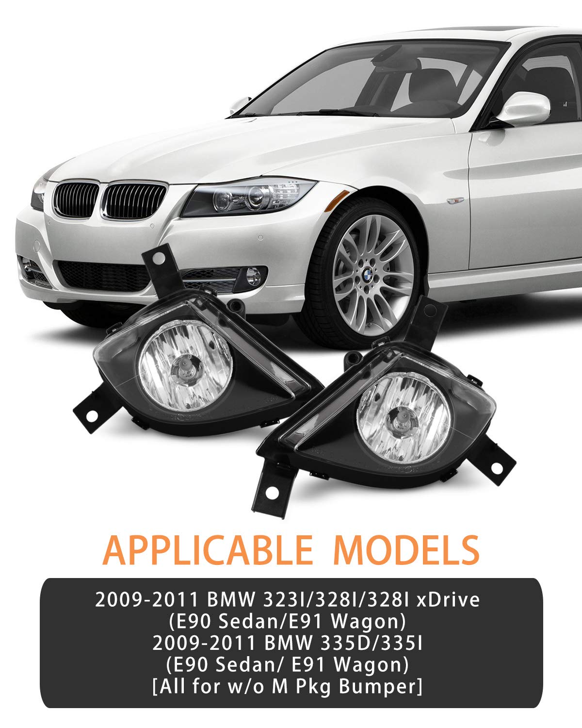 Fog Lights For 2009-2011 Bmw 3 Series Sedan/Wagon E90/E91 (W/O M Pkg) With Clear Lens 2Pcs Autowiki