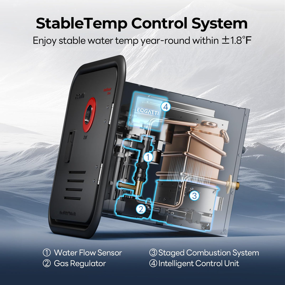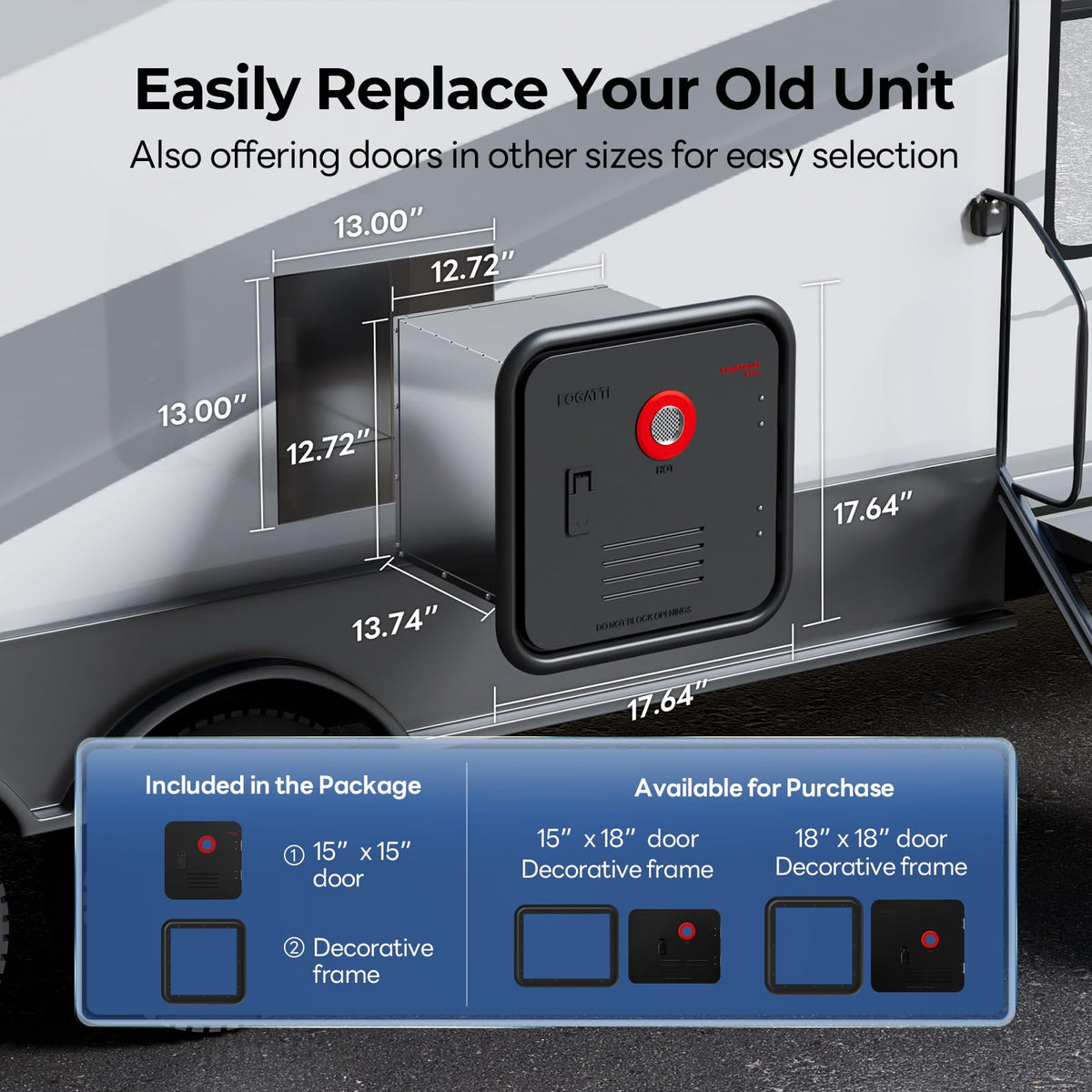 Fogatti Rv Tankless Water Heater, Instashower 8 Pro, Gen 2, 15X15 Inches Black Door And Remote Controller, Dc 12V, Propane, Best