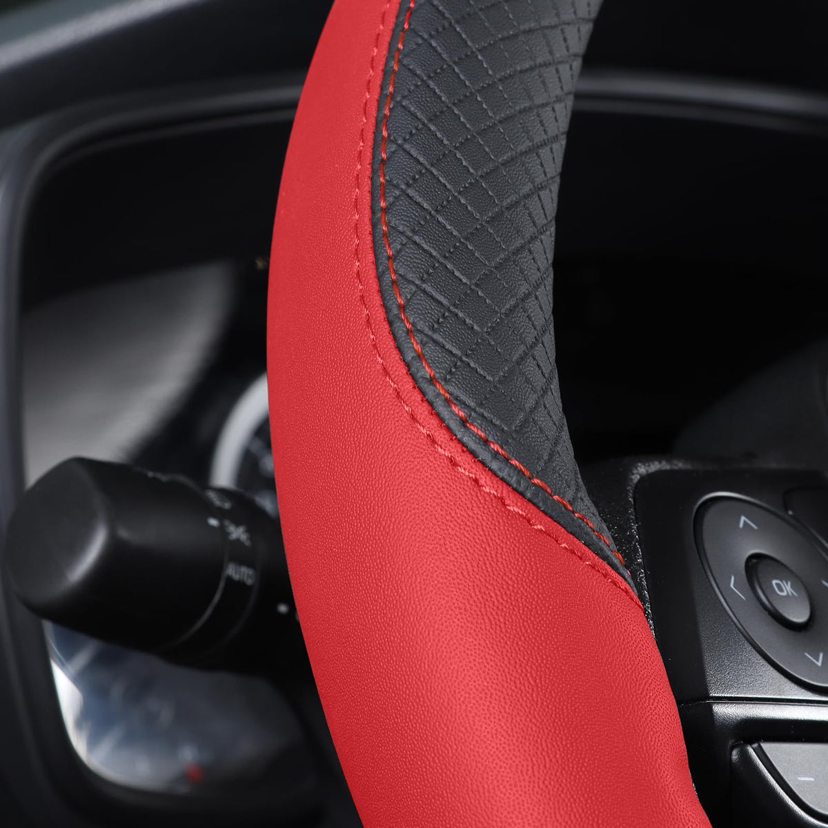 Follicomfy Auto Car Leather Steering Wheel Cover Anti Slip Wrap 15 '' (Red)