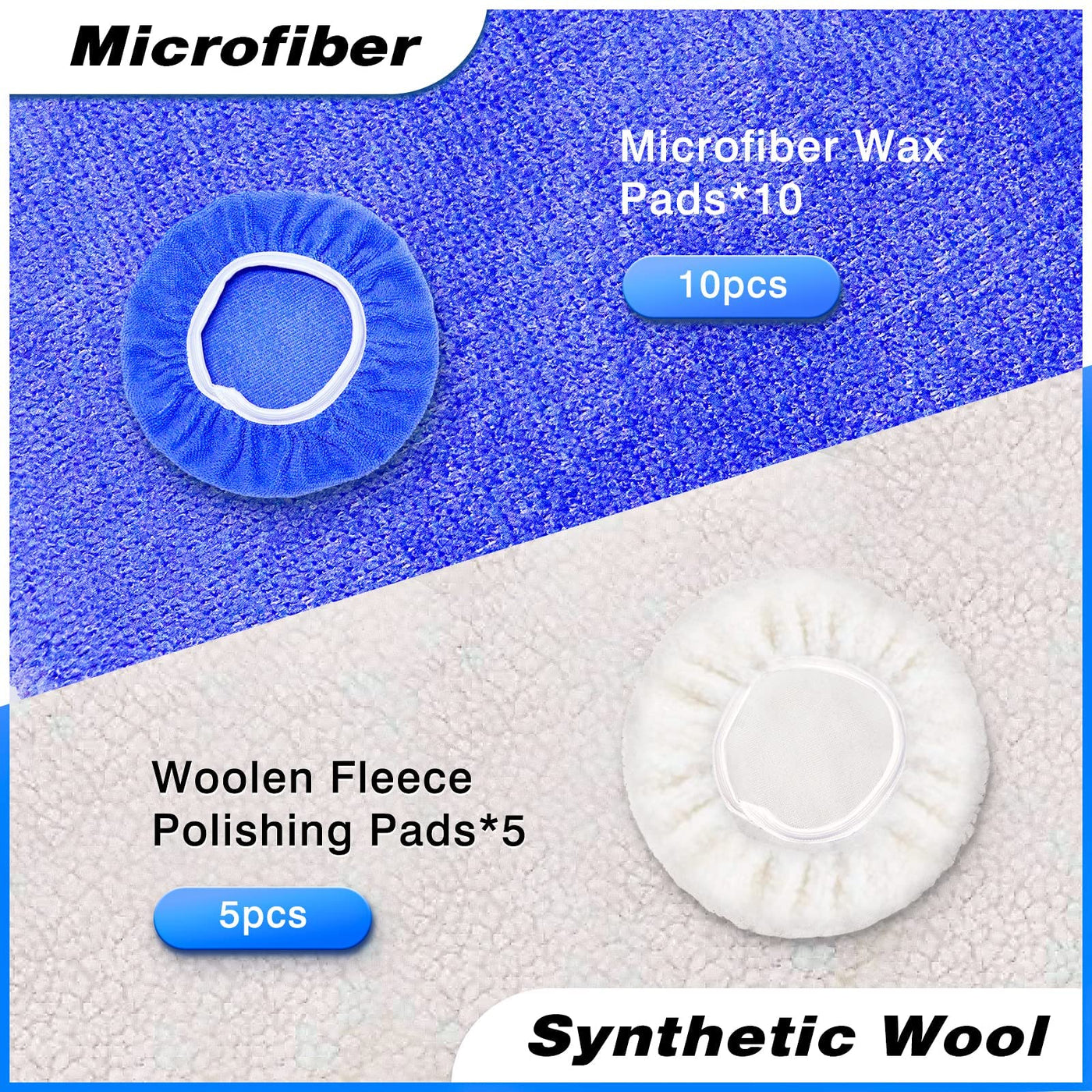 Fonaroll 5 To 6 Inch Car Polisher Pad Bonnet, 15Pcs Car Polishing Bonnet Buffing Pads, 10*Microfiber+5*Woollen