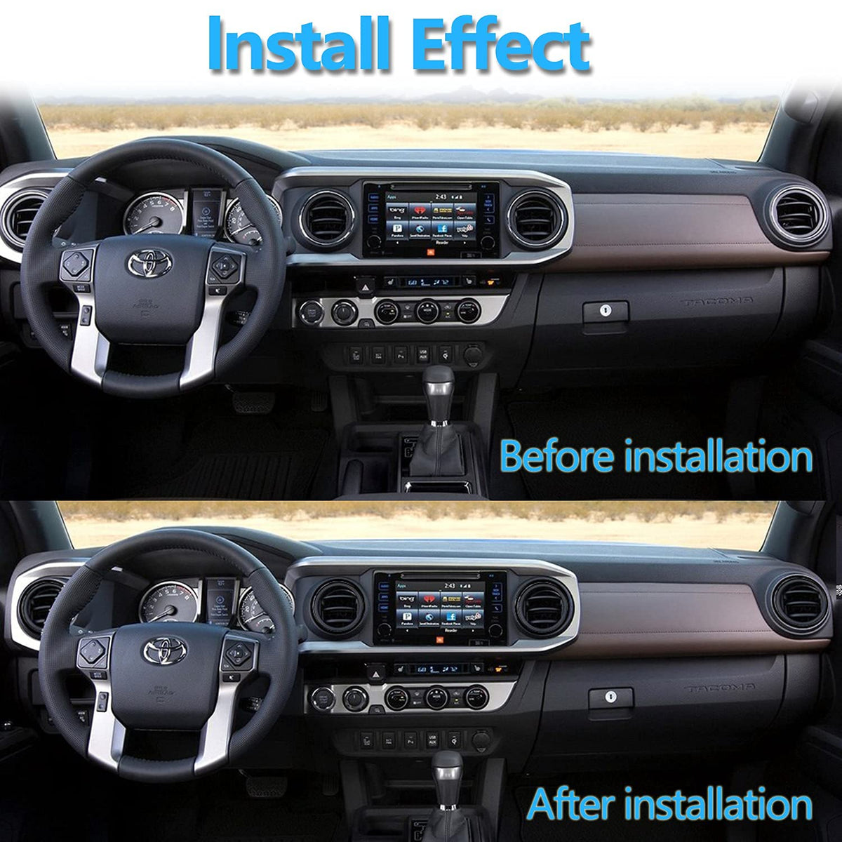 Q: Does the package include everything I need for installation?A: Yes, the package includes four pieces of the air conditioning outer ring trim, which are all you need for a complete installation on your Tacoma's A/C vent.