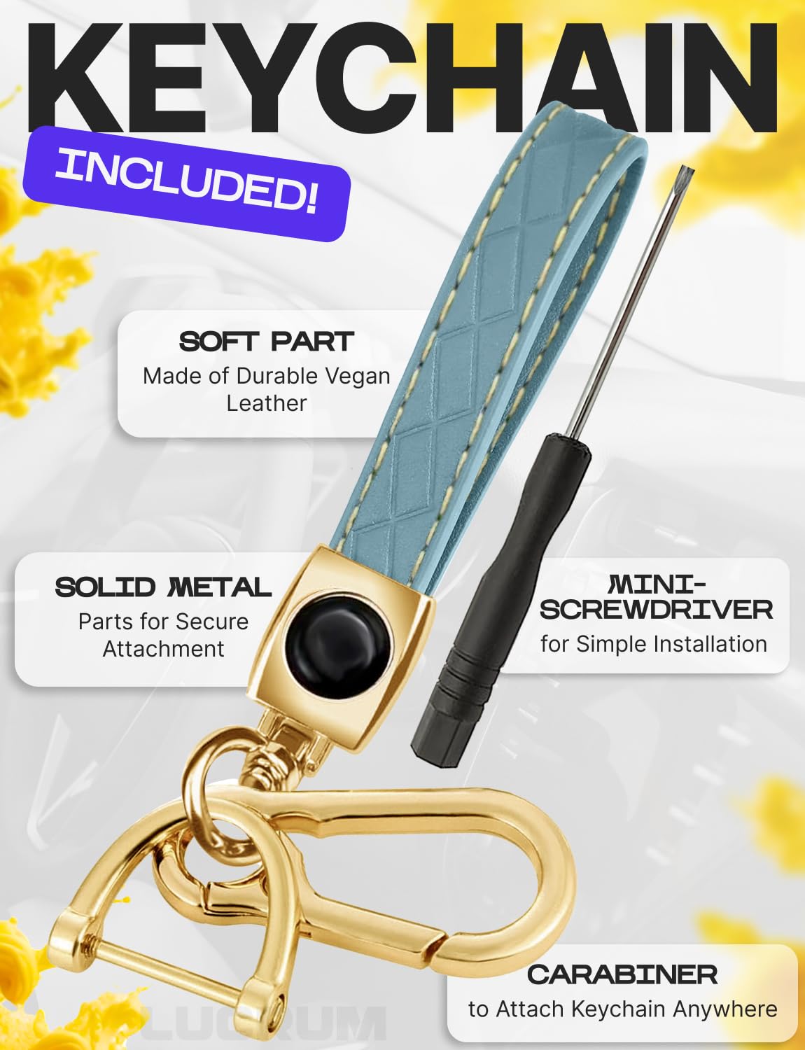 Q: Does this product come with a keychain attachment?A: Yes, the key fob cover includes a leather keychain lanyard attachment with a carabiner, allowing you to conveniently attach it to your bag or belt loop.