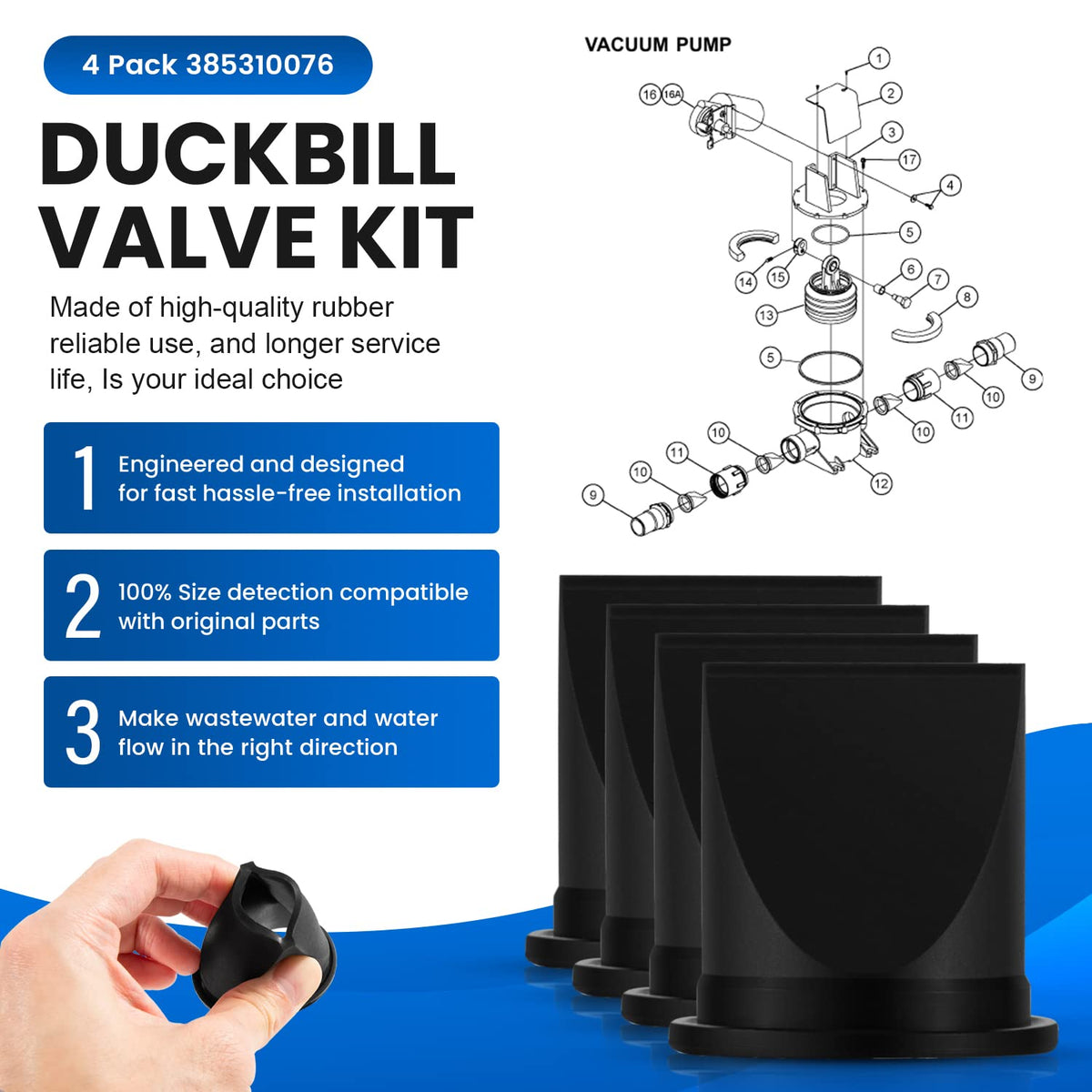 Q: How do I install the Duckbill Valve and other components?A: Installation is straightforward and designed for ease of use. Simply follow the included instructions, ensuring that the parts are correctly aligned to avoid any mess during setup.