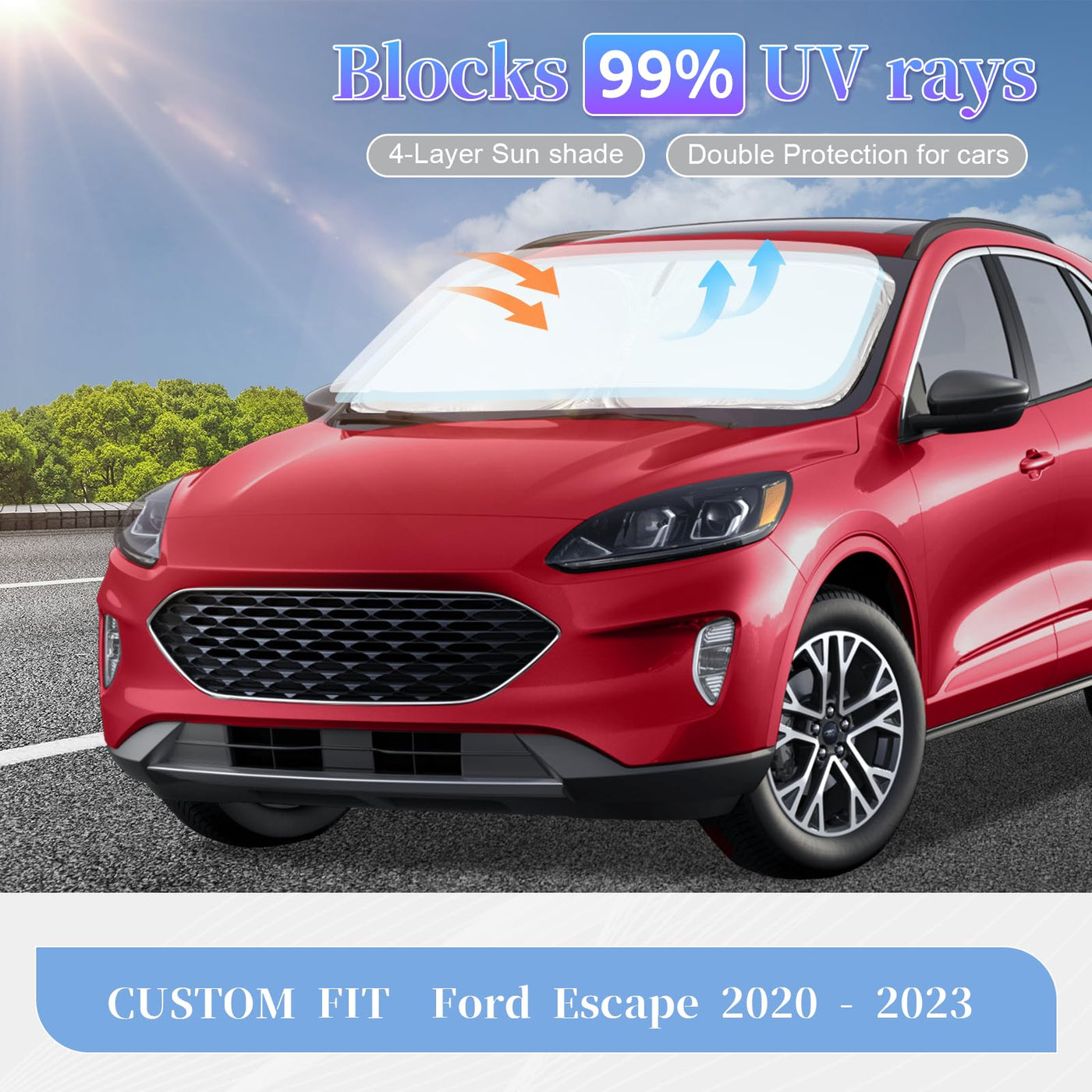 Q: Is this sunshade compatible with all Ford Escape models from 2020 to 2025?A: Yes, this sunshade is specifically designed to fit Ford Escape models including S, SE, SE Sport Hybrid, SEL, and Titanium for the years 2020 to 2025.