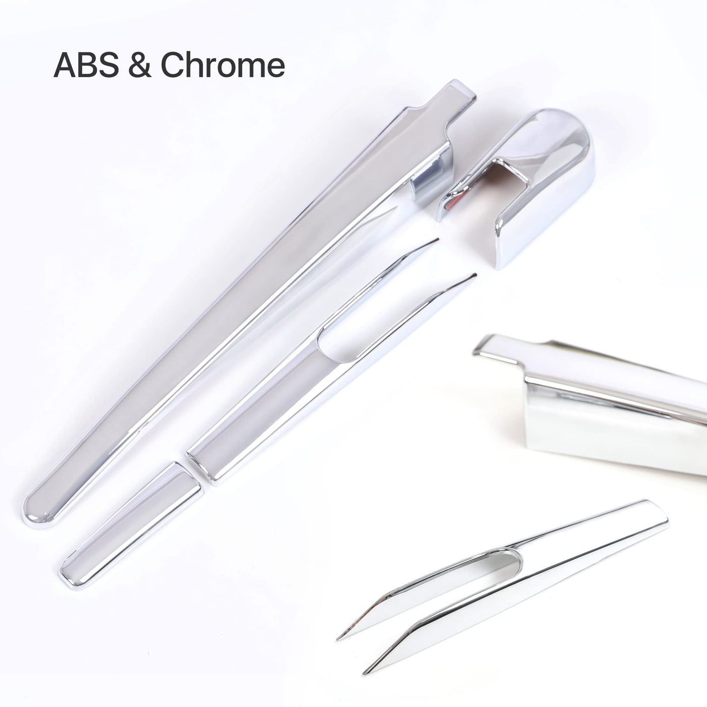 Q: What material is used for the AntBooBoo rear wiper trim?A: The rear wiper trim is made from high-quality ABS material, featuring a professional triple chrome plating that provides a mirror-like finish.