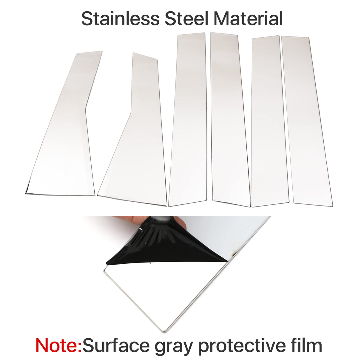 Q: How many pieces are included in the package?A: The package includes a total of 6 pieces of stainless steel door window center pillar post trims, offering complete coverage for your vehicle's pillar posts.