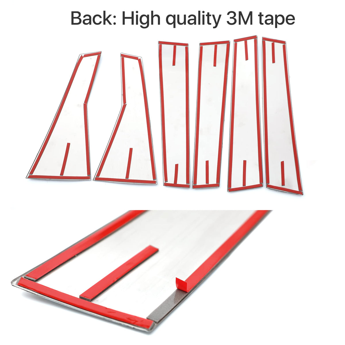 Q: How do I install the stainless steel pillar trims?A: Installation is straightforward; simply apply the trims on top of the factory pillar post using the included 3M tape. It's important to test fit the trims before peeling off the tape, as they cannot be reapplied once attached.