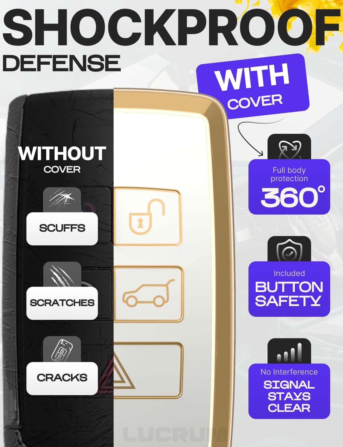 For Land Rover Key Fob Case Is The Best Solution If You Are Not Satisfied With The Original Design Of The Key Fob Or Want To Protect It From Accidental Damage.With Its Stylish Design, The Tpu For Range Rover Key Fob Cover Adds A Touch Of Sophistication To Your Key Fob, Enhancing Its Overall Appearance. Available In 3 Colours And Finishes, You Can Choose The One That Matches Your Personal Style And Preferences.Compatible With Landrover Listed Models:Defender (2020-2023)Discovery (2017, 2018, 2019, 2020, 2021, 2022, 2023)Discovery Sport (2018-2023)Range Rover (2018-2023)Range Rover Evoque (2019-2023)Range Rover Sport (2018-2023)Range Rover Velar (2017-2023)Compatible With Jaguar Listed Models:E-Pace (2018-2023)F-Pace (2018-2023)I-Pace (2020-2023)F-Type (2018-2023)Xe (2018-2023)Xf (2018-2023)Xj (2018-2023)In Addition To Protecting The Buttons Of Your Key Fob, The Key Cover Also Safeguards Them From Accidental Presses. The Precise Cutouts Allow Easy Access To All The Buttons, Ports, And Features Of The Key Fob, Ensuring Full Functionality Without The Need To Remove The Cover.With Its Combination Of Style, Button Protection, All-Around Coverage, And The Detachable Keychain With A Carabiner, The Tpu Key Fob Cover Offers A Practical And Fashionable Solution To Keep Your Key Fob Safe And Secure