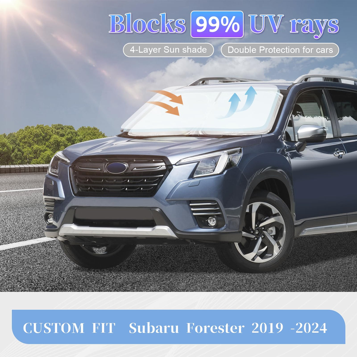 Q: Is this sunshade compatible with all Subaru Forester models from 2019 to 2024?A: Yes, this sunshade is specifically designed to fit Subaru Forester models from 2019 to 2024, including Base, Premium, Sport, and Limited versions.