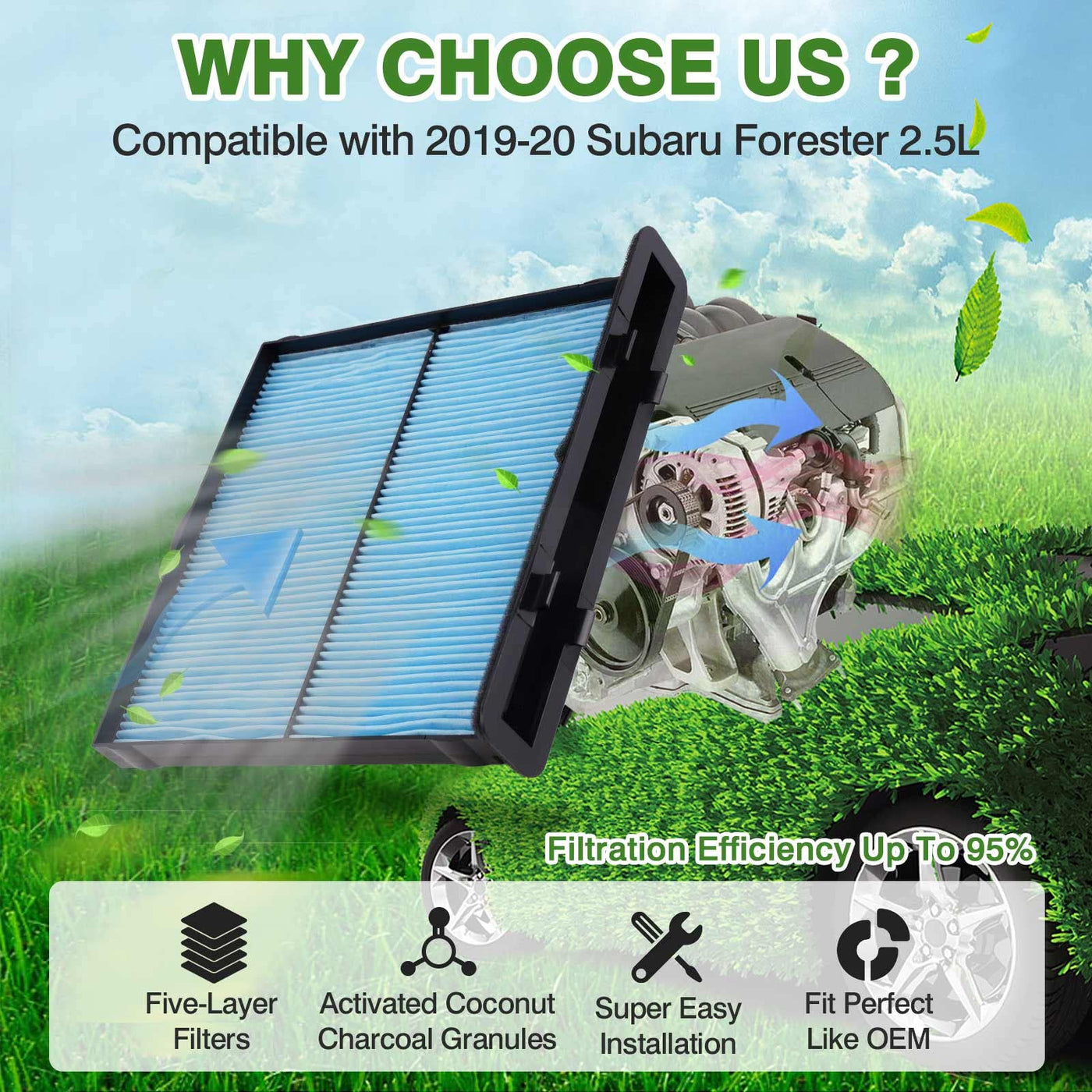 Q: What vehicles are compatible with the Forccord Cabin Air Filter?A: The Forccord Cabin Air Filter is compatible with the 2019-2024 Subaru Forester and the 2022-2024 WRX, specifically designed to fit part number 72880-FL000.