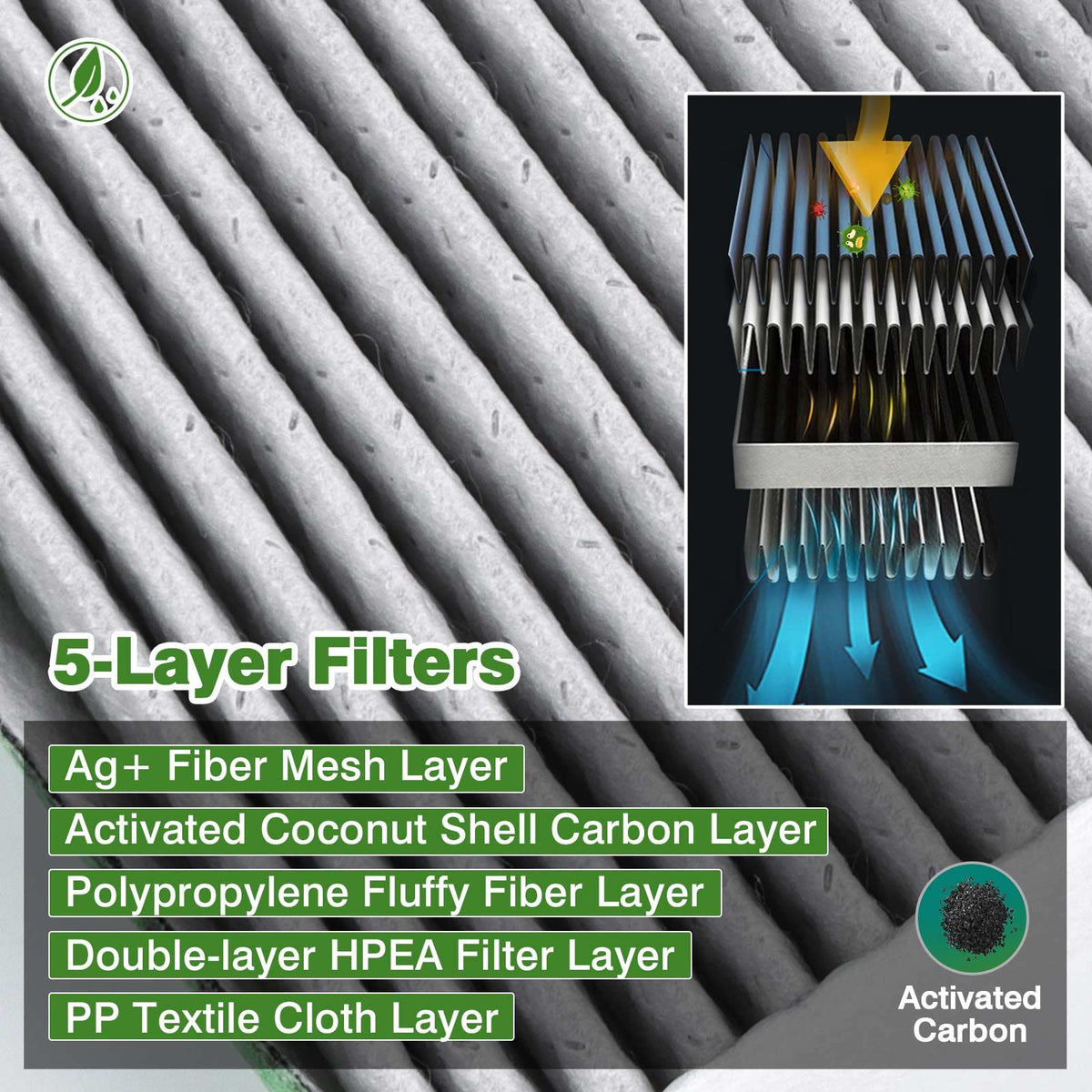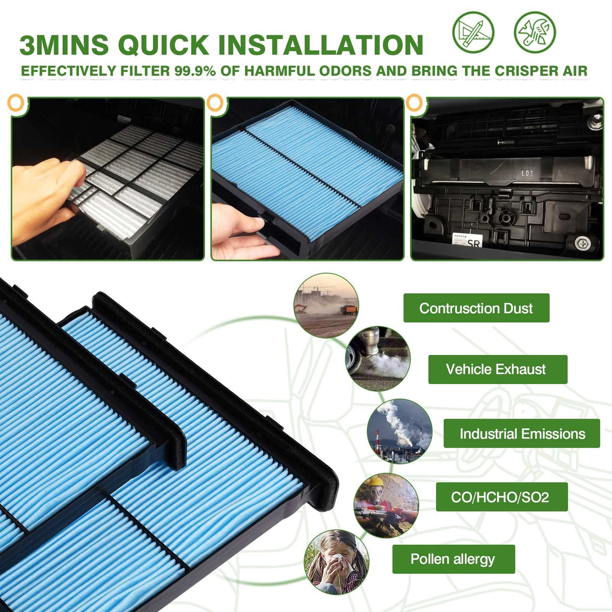 Q: What makes the Forccord Cabin Air Filter different from standard filters?A: The Forccord Cabin Air Filter features a newly upgraded five-layer design, including a large-capacity blue silk filter cloth and double-layer HEPA filtration, which removes 99.9% of harmful pollutants like dust and pollen, providing a longer life of up to 20,000 miles.