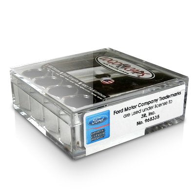 Q: What materials are used in the Ford GT Valve Stem Caps?A: The Ford GT Valve Stem Caps are made from high-quality Acrylonitrile Butadiene Styrene (ABS) plastic, which is durable and weather-resistant. They also feature a Buna-O-ring for an air-tight seal and are protected with a poly-carbonate coating to prevent scratches and UV damage.