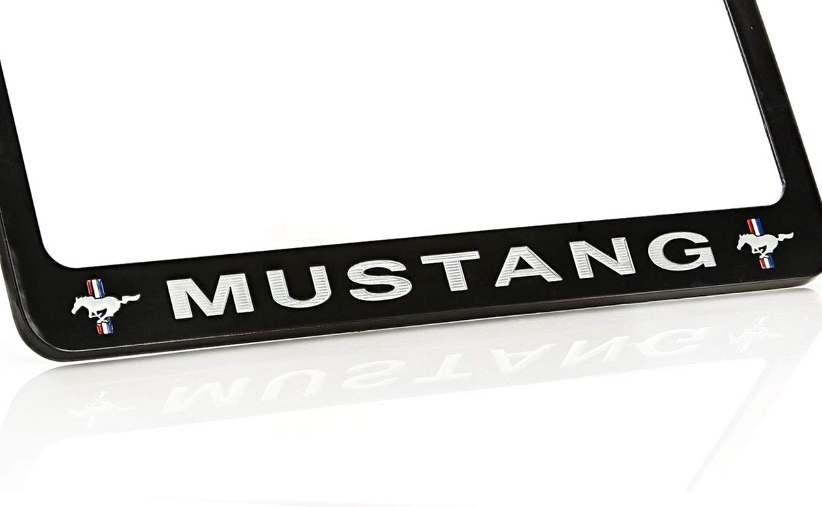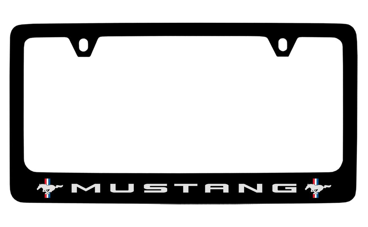 Ford Mustang Pony Black Coated Metal License Plate Frame Holder