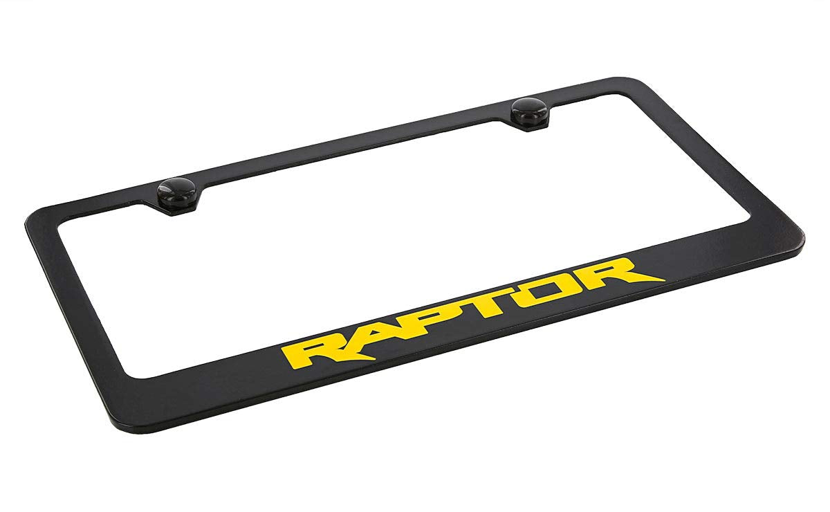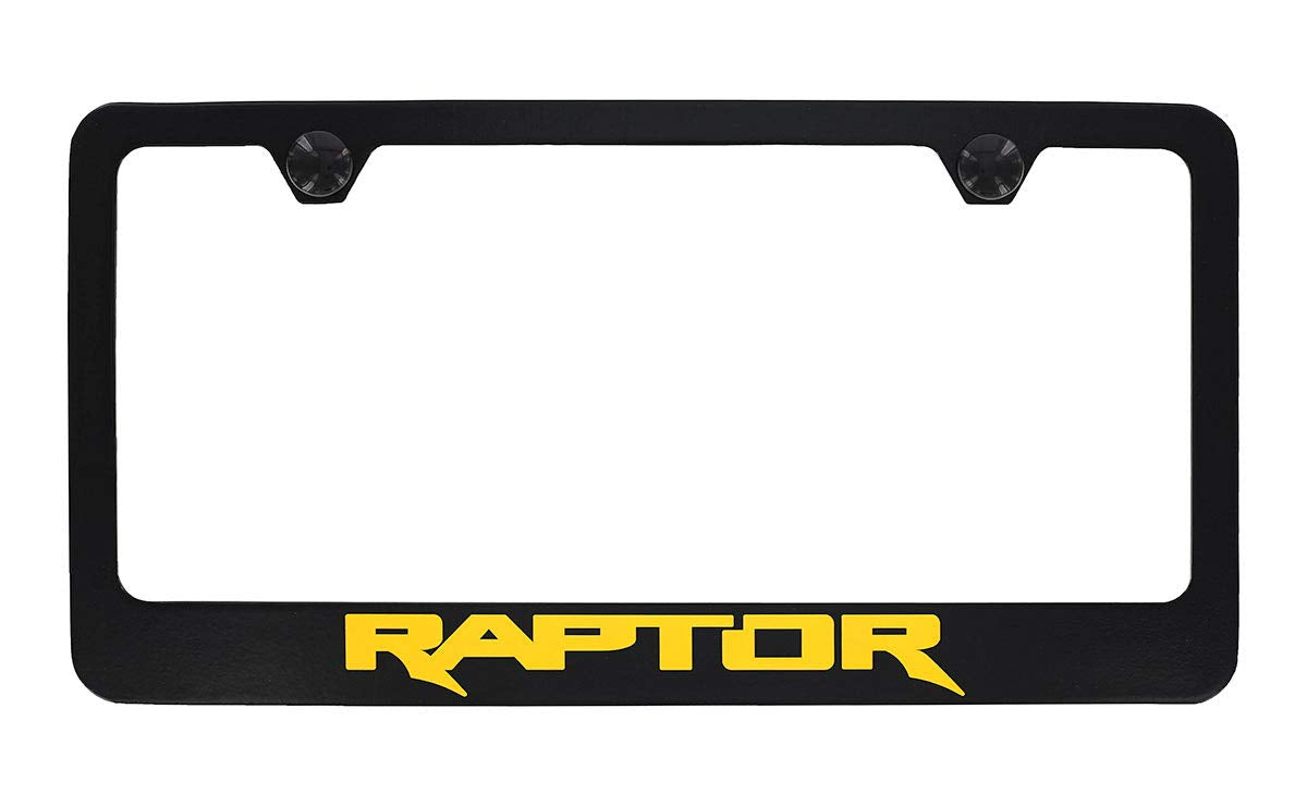 Ford Raptor Black/Yellow Metal Wide Bottom License Plate Frame Holder