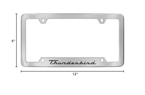 Q: Is the Ford Thunderbird License Plate Frame compatible with standard license plates?A: Yes, the Ford Thunderbird Chrome Plated Metal License Plate Frame is designed to fit all standard license plates in the USA and Canada, which measure 12" x 6".