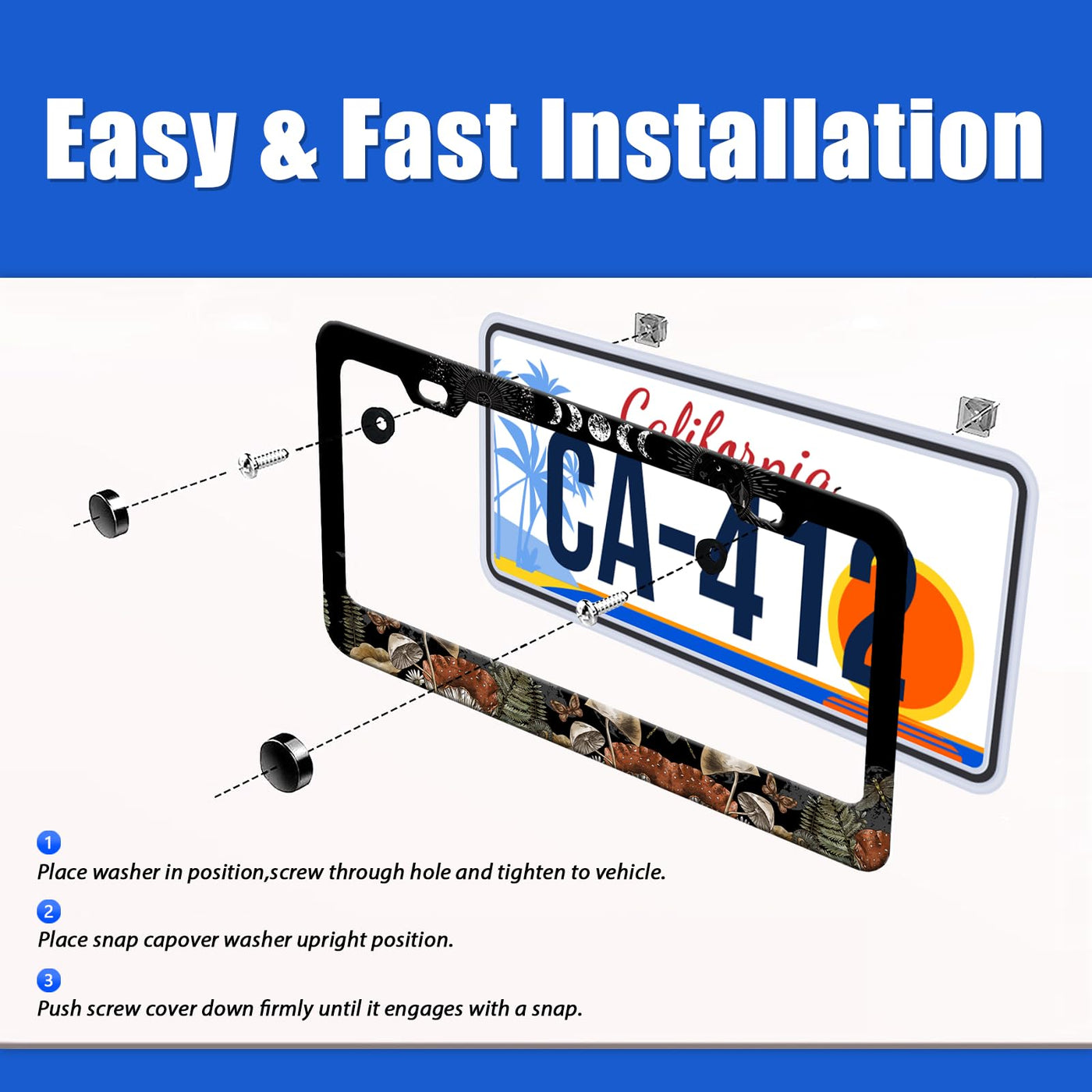 Premium license plate frames, get out of the box and be the coolest car ever!The license plate frame is made from stainless steel and measures is 12.3 x 6.3 inches. Standard license plate frame for most cars in the USA!It complete with 2 sets of screws, easy to install.No special tools needed!The four smooth rounded corners will not wear down your paint and the unique personalization makes your car even more stylish and unique!