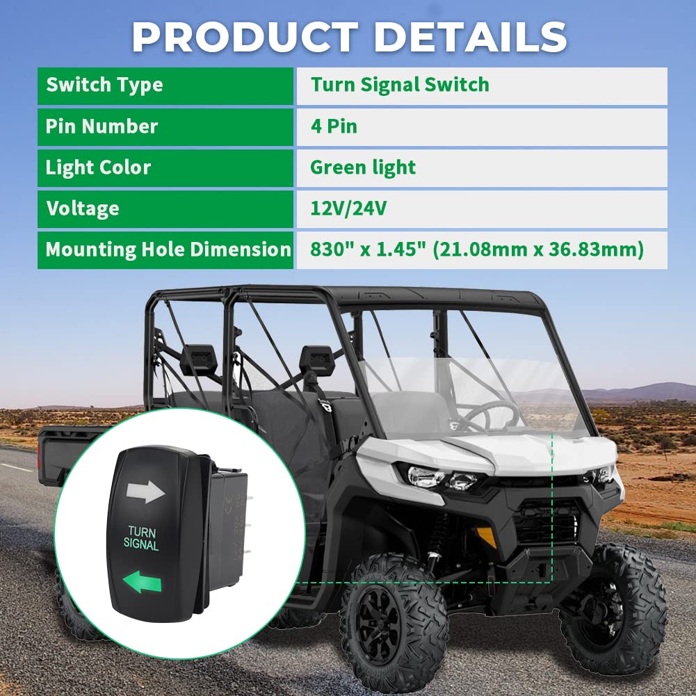 Fitment: Great For Utv'S, For Side By Sides, For Golf Carts, For Off-Road Vehicles, Or Any Vehicle To Add Turn Light! Package: 1X Turn Light Switch With Green Light