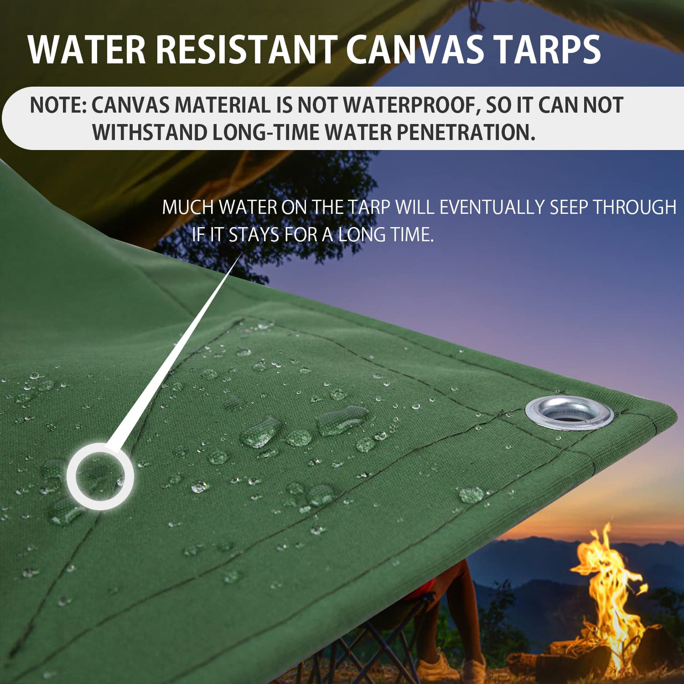 Q: Is the FoundGo Canvas Tarp waterproof?A: Yes, the tarp is designed with a water-resistant organic fluorine silicone layer, making it effective against water while remaining breathable.