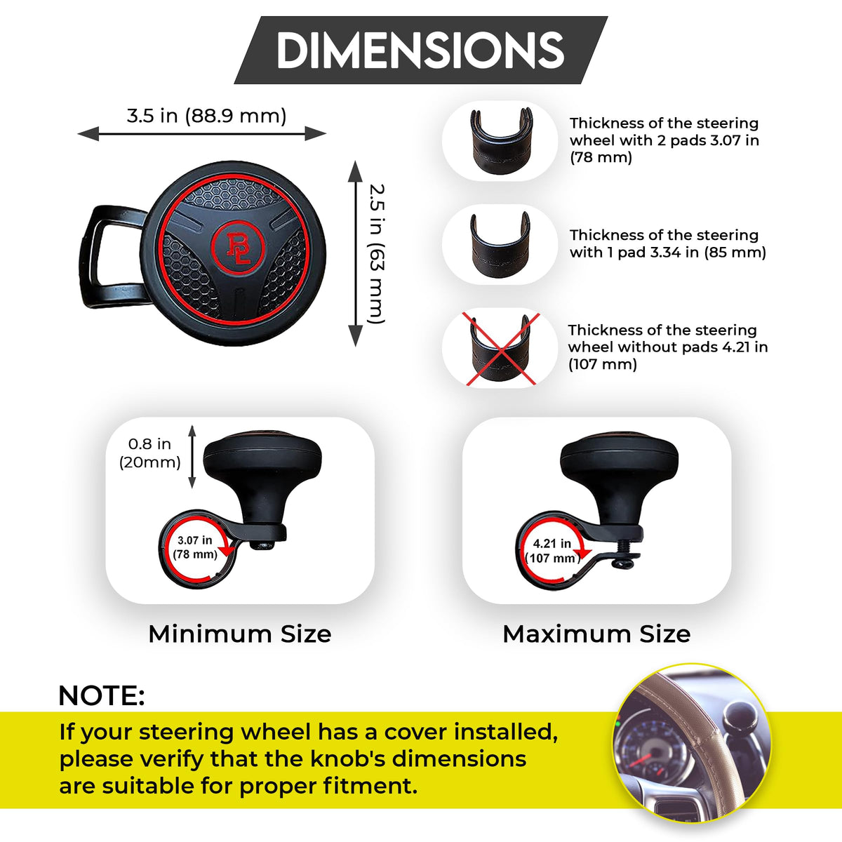 Installation is quick and hassle-free with dimensions of 90 x 60 x 80mm. This color with a matte finish adds a touch of elegance. Our steering wheel knob is universally compatible, flawlessly attaching to all types of vehicles, including boats, cars, tractors, SUVs, sedans, forklifts, mowers, minivans, and boats.