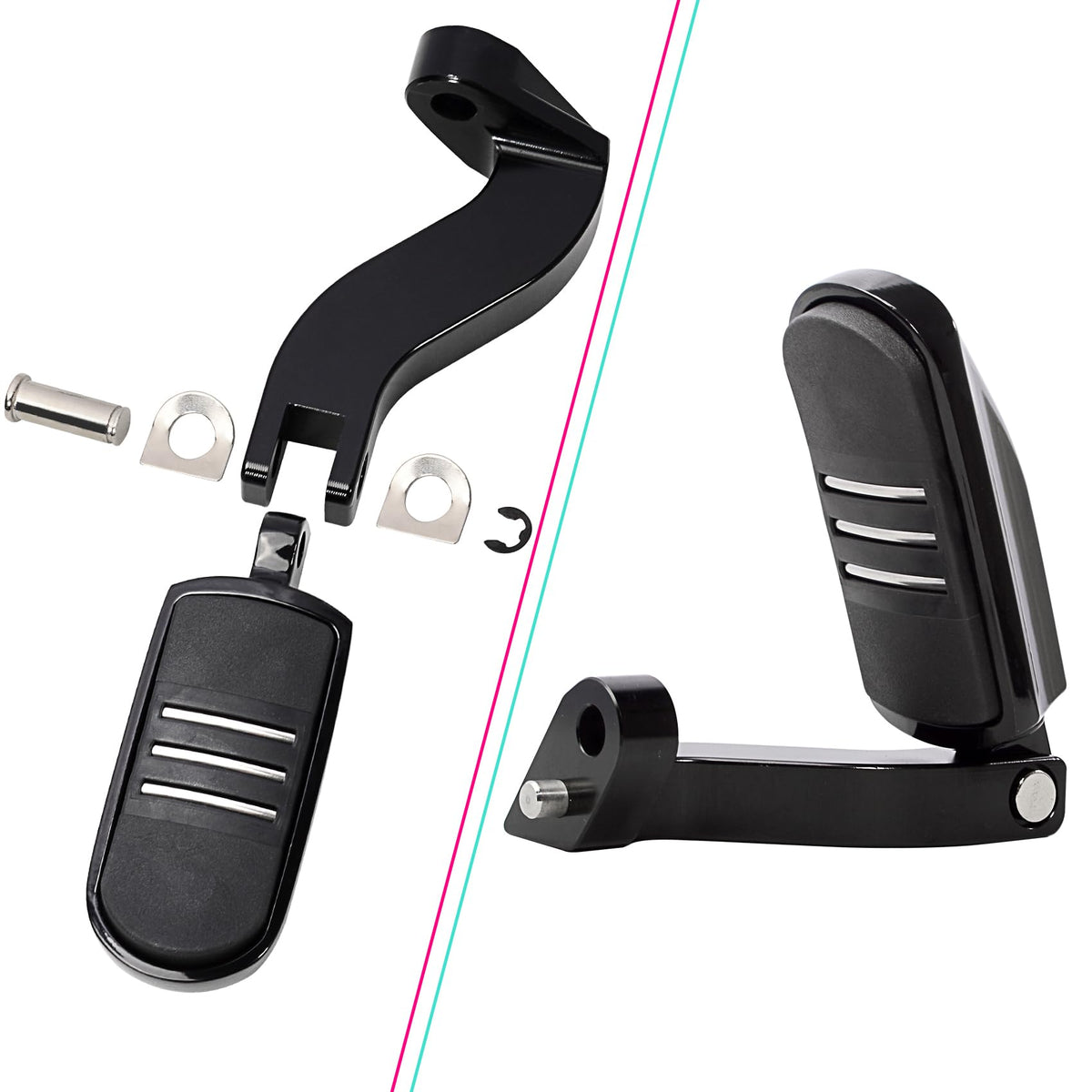 - Q: What are the aesthetic features of the FOVPLUE Passenger Footpeg Kit? A: The kit features a rich black rubber design with three raised chrome Tri-Line bands, providing a stylish look that enhances the appearance of your Harley compared to stock foot pegs.