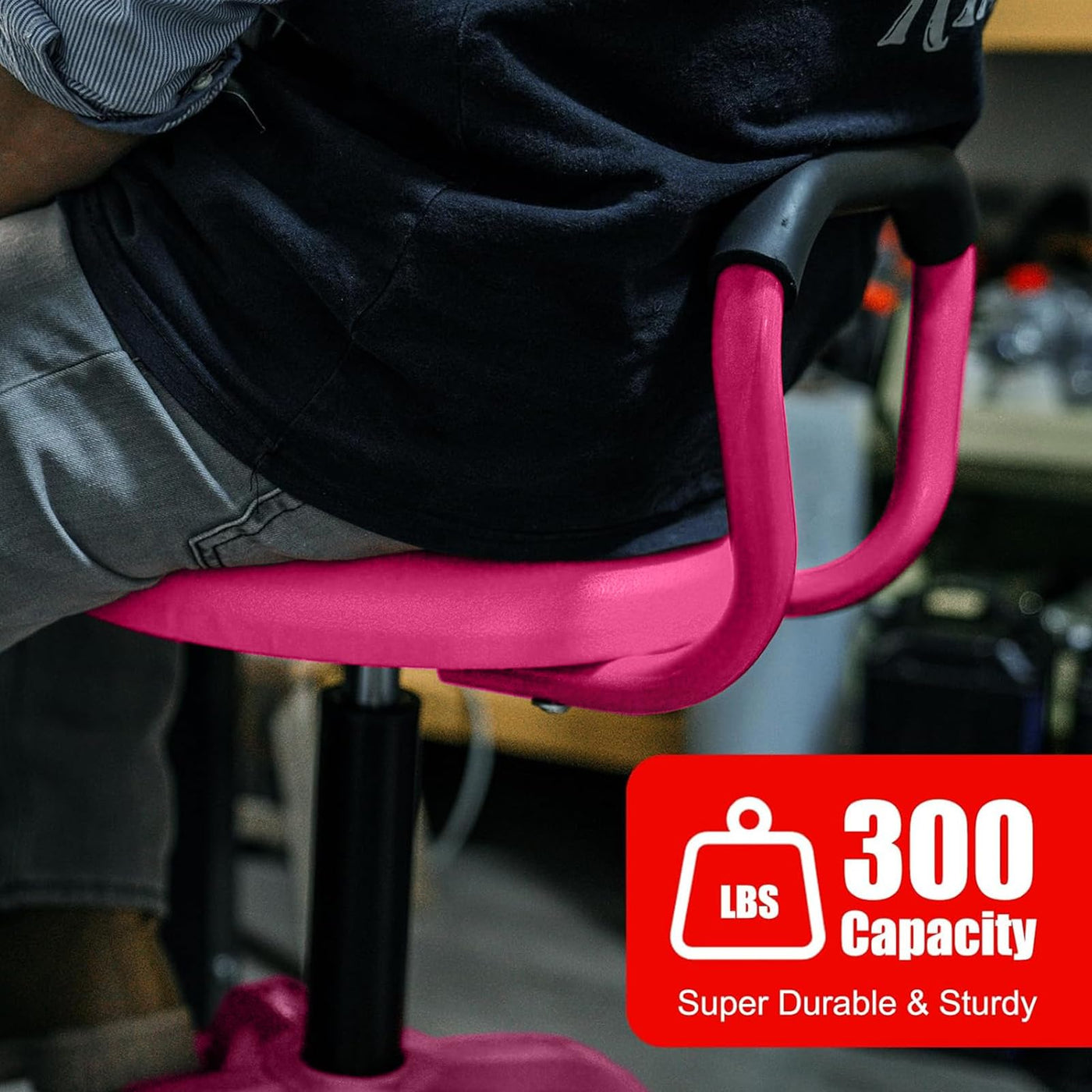FreekyFit Garage Stool, Adjustable Height Swivel Work Mechanic Shop Stool with Backrest, Pneumatic Shop Chair for Home, Workshop