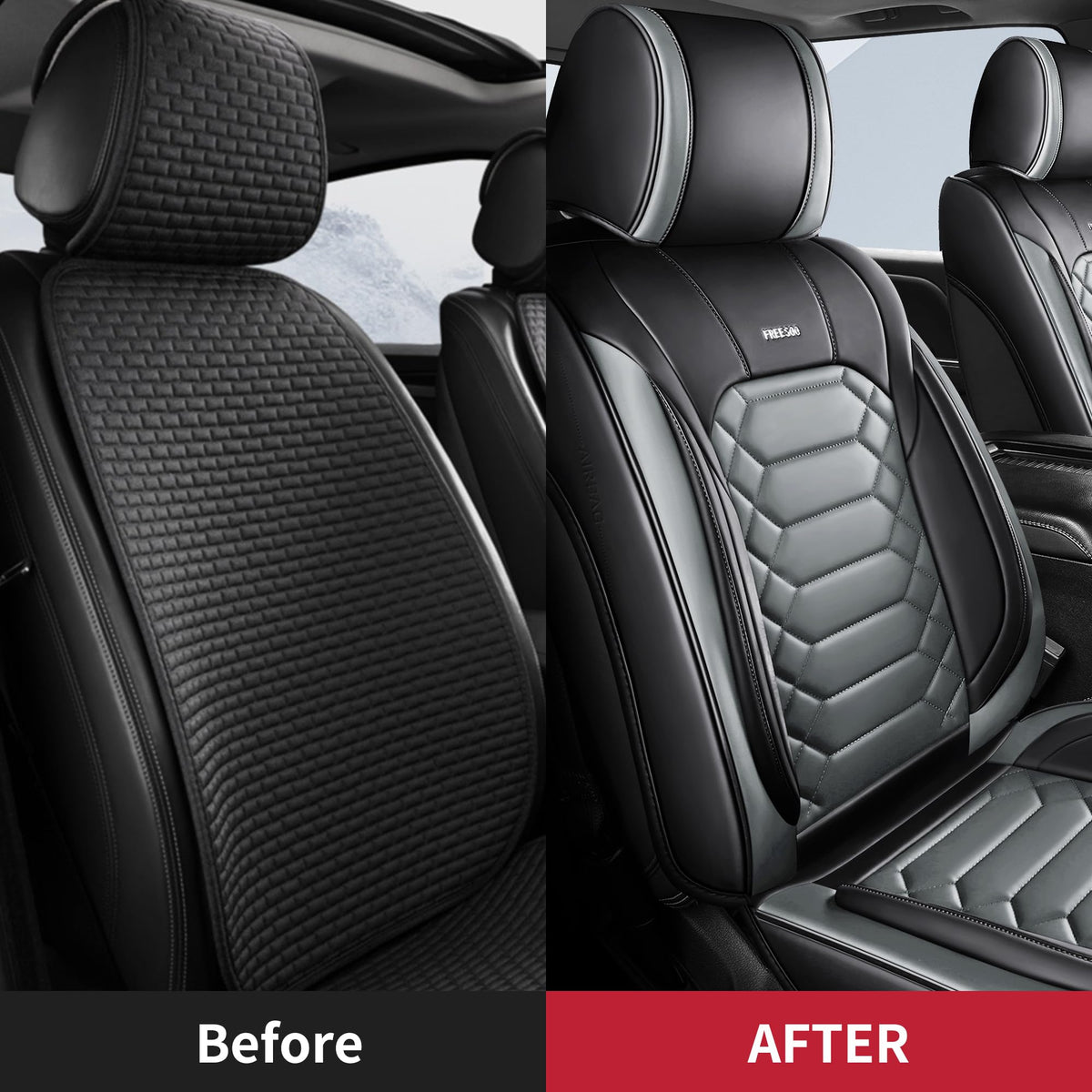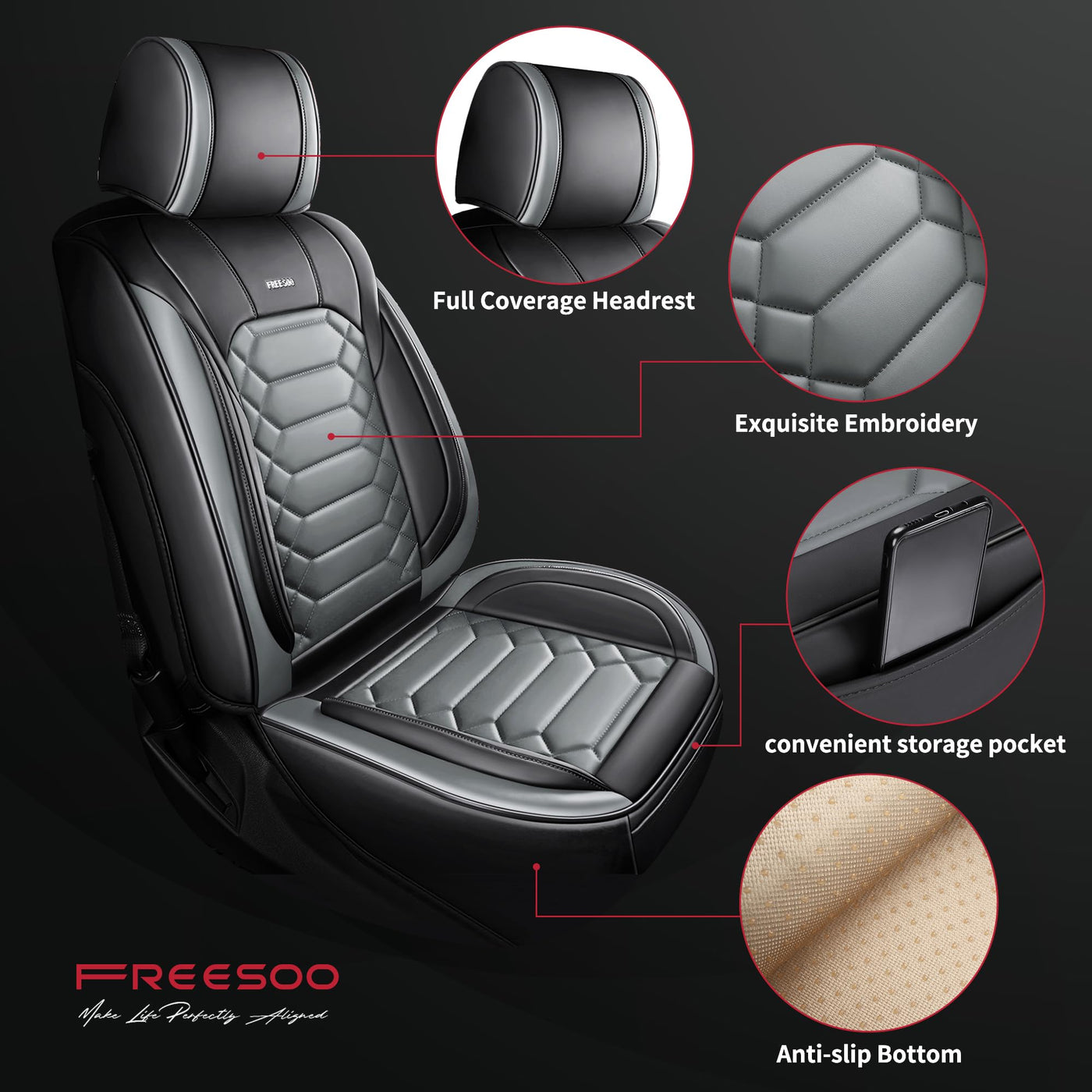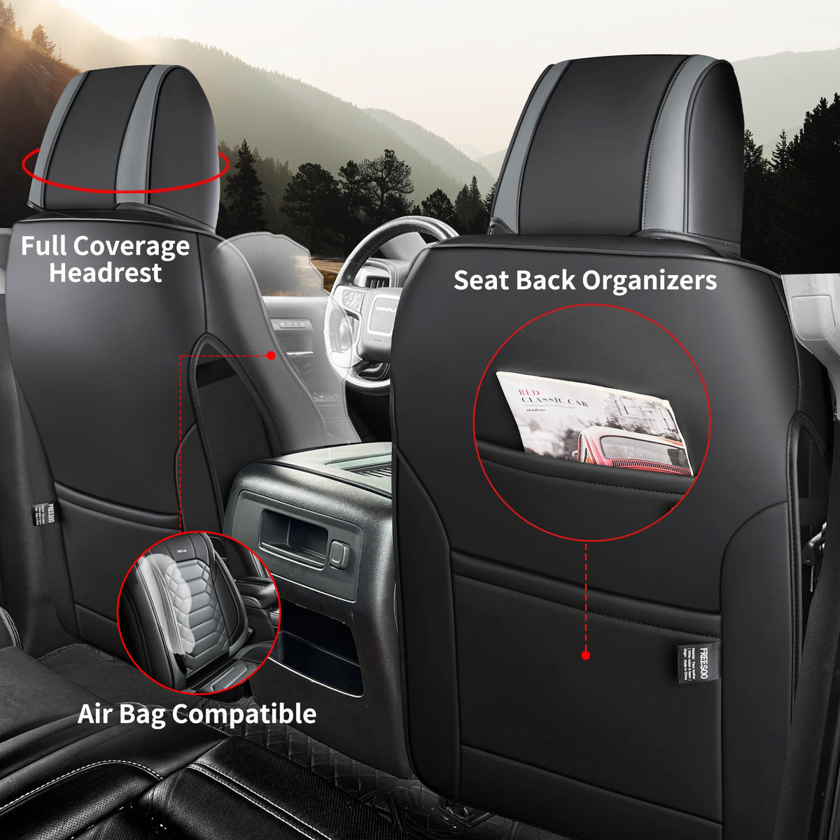 2 PCS Front Seat Covers - Crafted with premium faux leather and foam backing, these seat covers deliver maximum durability and comfort, ensuring long-lasting use | Upgrade your interior - Designed to fit the 2014-2024 Silverado 1500/2500/3500,also applies to 2014-2018 GMC/Sierra models. Including trims like Crew Cab and Double Cab 1LT/2LT/1LZ/2LZ/LT/LTZ/High Country | Perfect Protection - Made of premium faux leather, these chevy silverado seat covers is waterproof, wear-resistant and durable enough to protect your original car seat from dirt, dust, pet hairs and sweat.Not only that, they are also airbag compatible and come with a reserved seat belt buckle to ensure your safety while driving | Easy to Install - Installing these seat covers is a breeze, no tool needed. Installation instructions are included in the package. Just slip them on and secure them in place using the included hooks and straps, it will never slide after proper installation | After-Sale Support - FREESOO will provide customers with satisfactory after-sales service.If you received defects products, lack of hardware or install problem, please don't hesitate to reach us. We're here to help