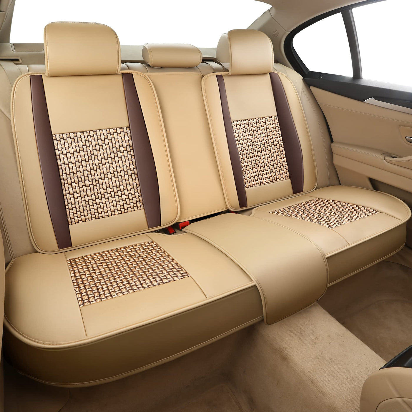 Freesoo Car Seat Cover, Leather Seat Covers Full Set, Classic Breathable Padded Automotive Seat Protector Most Sedan Suv Truck U