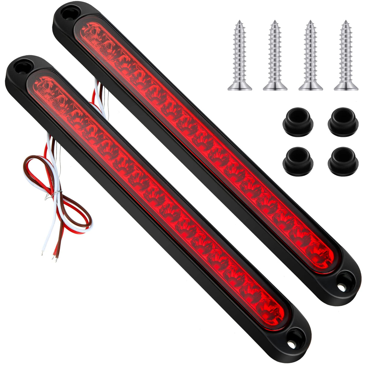 Features: Package Includes Two Led Lights, Four Screws And Four Screw Caps. You Don'T Need To Prepare Other Accessories For Installing This Light Good Quality Using Ip67 Waterproof Material, Can Ensure The Normal Use In Rainy And Humid Environment, At The Same Time, It Has Shockproof And Dustproof Function, Can Protect Led Lamp From Sand And Rain, Even In Bad Weather And Environment, They Can Also Provide You With Reliable Lighting Easy To Install White Wire - Ground. Red Wire - High Brightness. Brown Wire - Low Brightness. Package Included: 2X Led Tail Light, 4X Screws, 4X Screws Caps Wide Applied It Can Be Widely Applied In Most Types Of Heavy Trucks, Semi Trailers, Cargo Trailers, Marine Trailers, Working Vehicles And Other Land Vehicles Requiring Rated Lighting Dc 12V Wide Application It Is Suitable For Marker, Replacement Light, Stop Brake Light, Side Marker Light, Indicator Light, Turn Light, Clearance Light, Real Light, Roof Light, Grill Light, Identification Light, Real Bumper Lights, Auxiliary Driving Lights, Etc Specification: Size: As Shown As Pictures Color: As Shown As Pictures The Package Includes: 2X10 Inch Led Trailer Tail Light