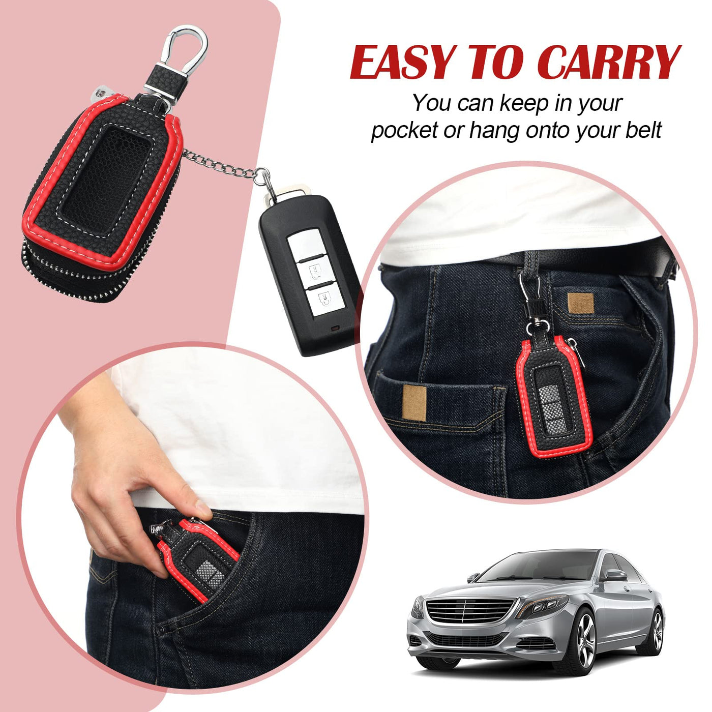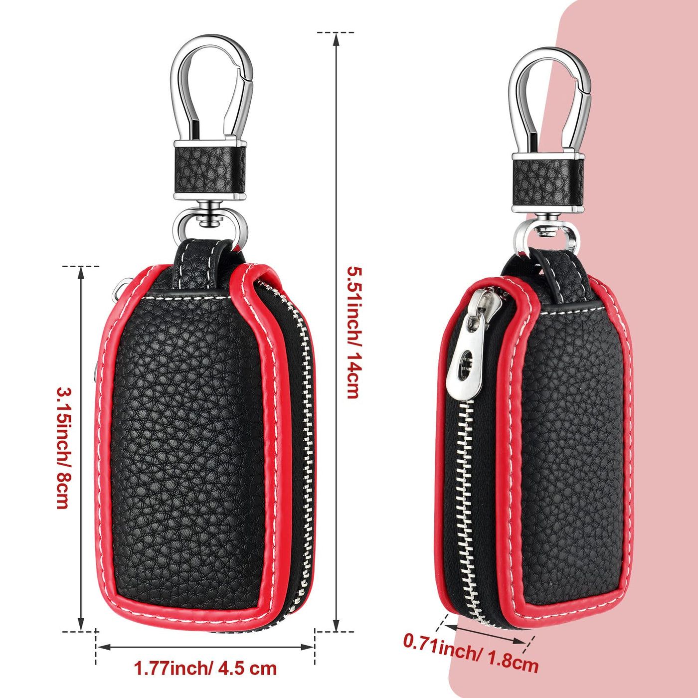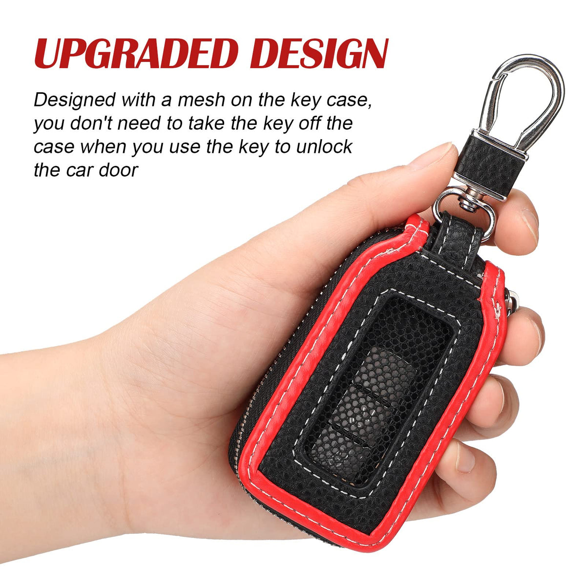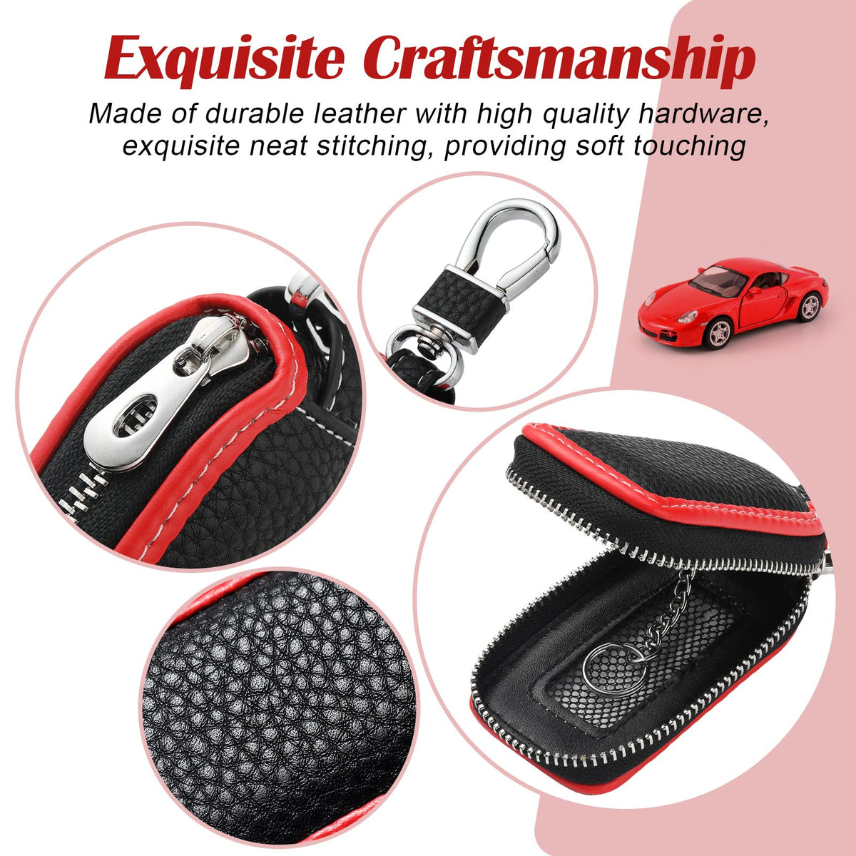 Convenient to use: This universal car key case is suitable for most car key, designed with zipper closure and has a mesh on the key chain bag, you don't need to take the key off the case when you use the key to unlock the car door.