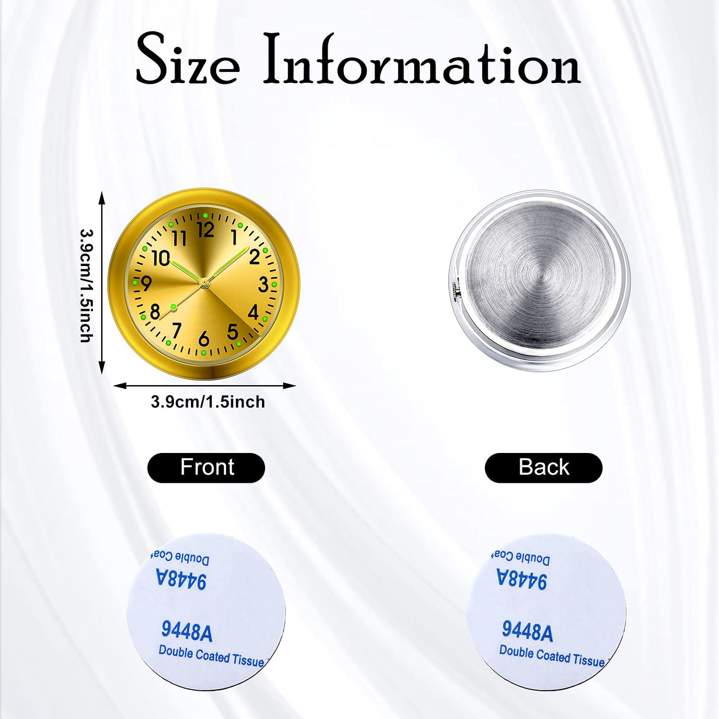Features:Practical and delicate: Exquisite workmanship, delicate and cute decoration for your car, it also can be well applied in your home or office, really practical and convenient to apply.Luminous design: Luminous clock points and digital display can give you a clear view even in the dark night, really convenient to use and protect your driving safety to some extent.Specifications:Color: as picture shownMaterial: steel Quantity: 2 piecesSize: approx. 1.57 inch in diameterPackage includes: 2 x Car dashboard clocksWarm notes:Please allow slight size error due to manual measurement.The colors may exist slight difference due to different screen.