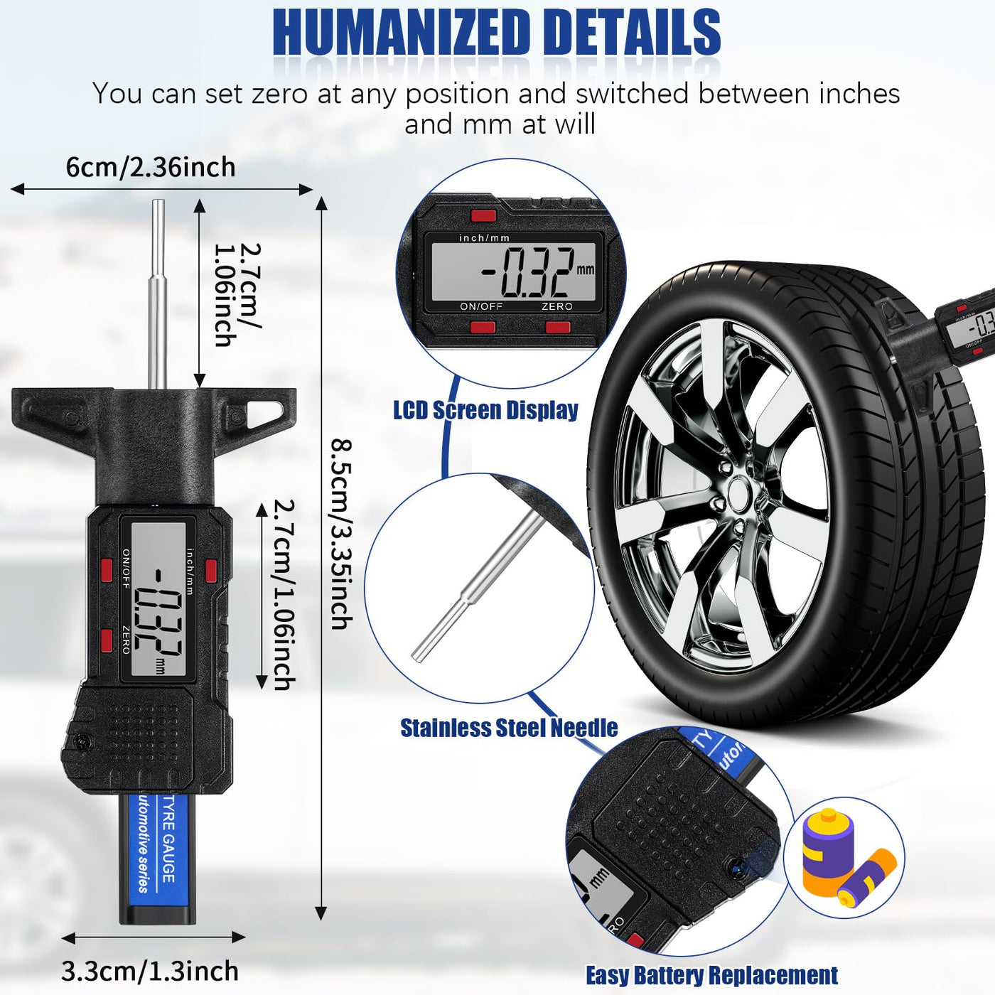 Features:Practical vehicle tool: These digital tire depth gauge can quickly check tire tread remaining to determine how long before they need replacing without remove the tires.Fit most situation: These tire tread depth gauge tools are suitable for any kinds of vehicle and covers trucks and heavy transportation as well, accurate measurement of tread markings to ensure your driving safety.Specifications:Material: plastic and stainless steelColor: as picture showsSize: as picture showsPackage Contents:1 x Digital tire tread depth gauge1 x Automotive brake pad measure ruler1 x Coded tire tread depth gaugeWarm notes:Please allow slight size error due to manual measurement.The colors may exist slight difference due to different screen.