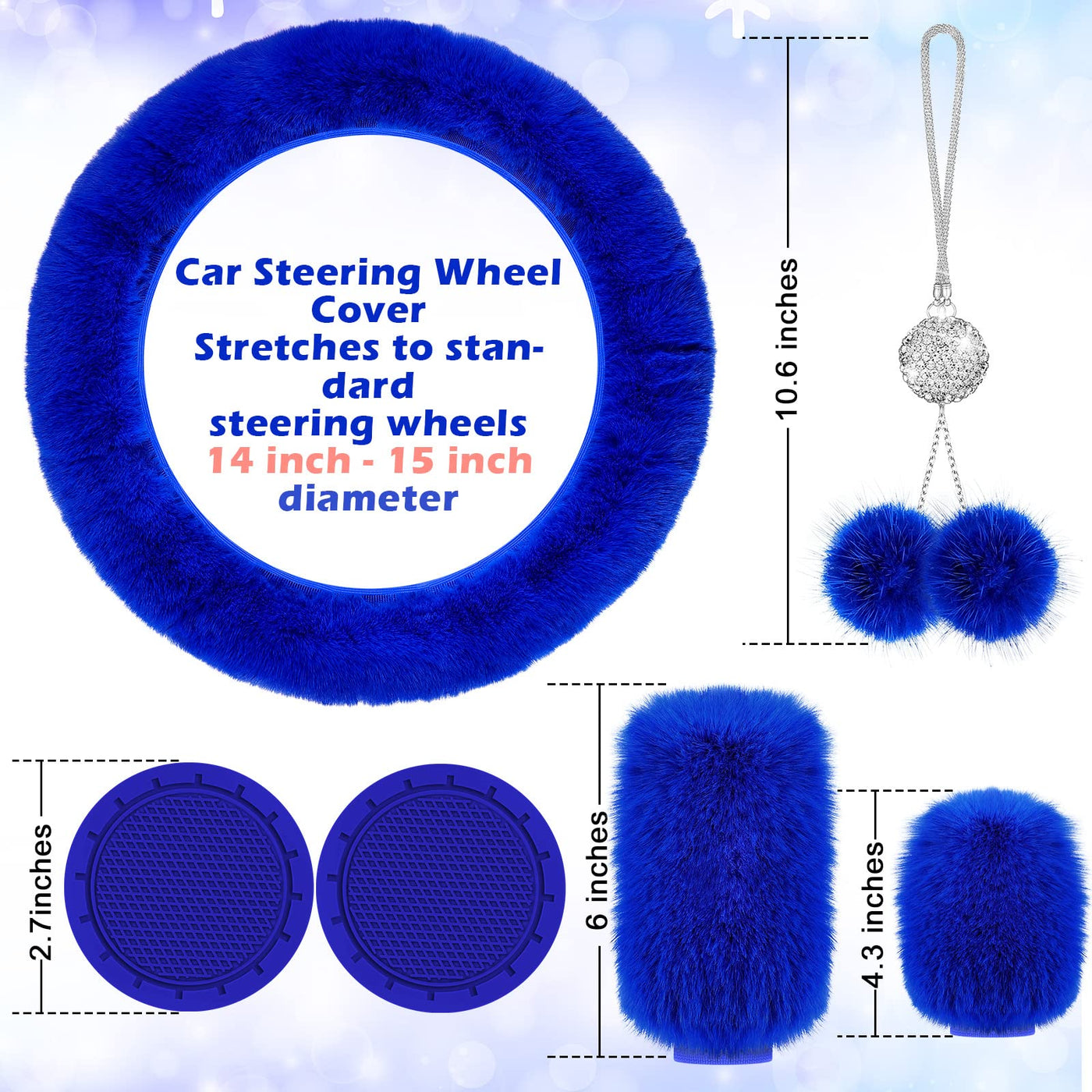 Features:Delicate present:The fluffy steering wheel cover can be a lovely present for your mother, wife, sisters, friends, neighbors, the classic color can highlight them, shocking them with something truly charming.Good design:The fluffy car accessory set is designed with rhinestone, shining and charming, easy to attract the attention of people in your car, keeping you and your family in a good mood the whole day.Specifications:Material:Fluffy steering wheel cover, fluffy handbrake cover, gear shift cover: artificial furCar pad: PVCCar mirror accessory: rhinestoneColor: as picture shown Size: Fluffy steering wheel cover: approx. 38 cm/ 15 inches in diameterBling car pad: approx. 2.75 inches in diameterBling car mirror accessory: approx. 11.8 inches in lengthPackage includes:1 x Fluffy steering wheel cover1 x Fluffy handbrake cover1 x Gear shift cover1 x Bling car mirror accessory2 x Bling car padsNote:Manual measurement, please allow slight errors on size.The color may exist slight difference due to different screen display.