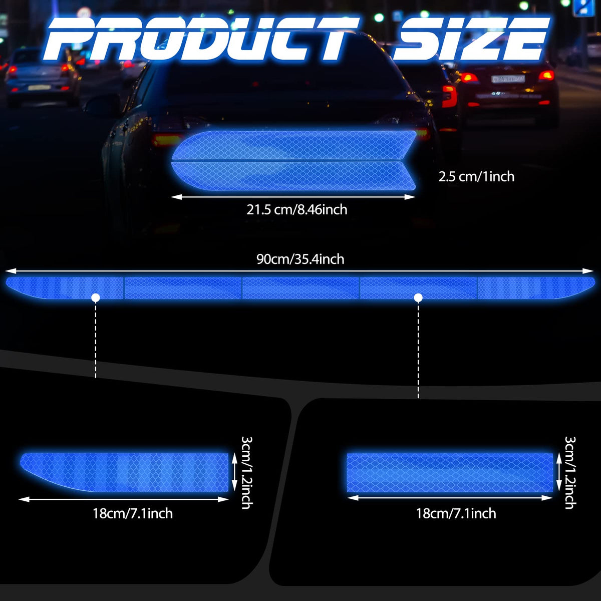 Features:Practical to use:The night visibility reflective decal reflects light to make the vehicle more visible in the dark, and the target can be spotted from 300 meters away, the driver approaching the vehicle can react quickly; Especially when you are out at night, which can ensure your driving safety.Easy installation:First wipe off the dust on the car and spray water on the place to be pasted, then spray more water on the glue side of the sticker. Put the sticker on the car and lift it from one corner, scrape off the excess water and air bubbles with a scraper until it is completely bonded.Specifications:Material: PETSize: as pictures shownQuantity: 7 pieces in total (2 sets)Optional color: red, whitePackage includes:2 x Car reflective stickersNote:Manual measurement, please allow little size errors.Because of lighting and screen settings, please note there might be slight color difference between the pictures and the actual product.