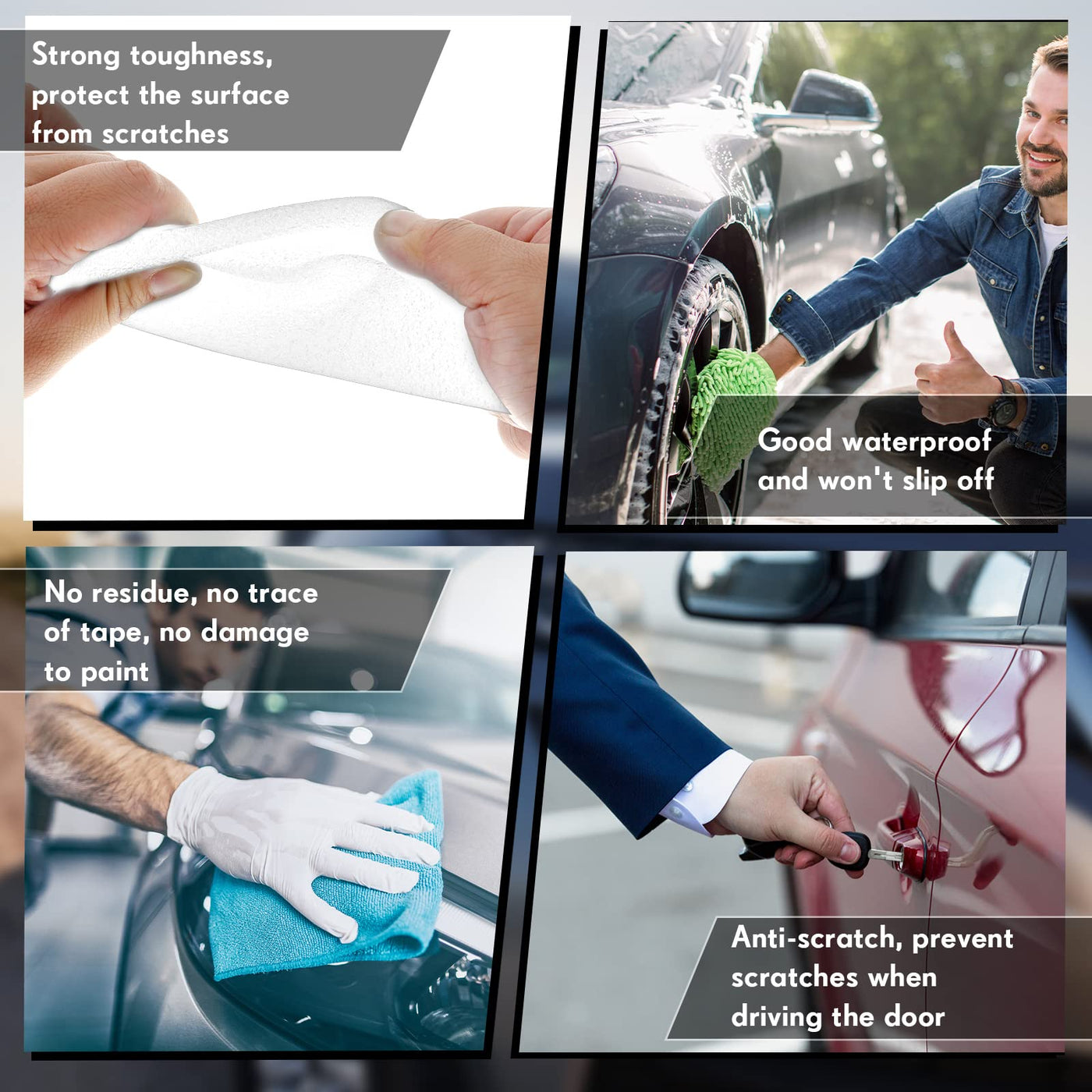 Features:Both practical and decorative: The car door film protector is designed in a simple and classic color, which does not affect the appearance of the car, and can highlight the beauty of your car body. It's also easy to clean, whether it is dust or dirt, you only need to clean the surface with a brush rag slightly.Ideal present:You can share the cat scratch door cover with your friends, colleagues, classmates, relatives, neighbours and family members who have cars, making them feel your love through little things and enhancing your relationship. Specifications:Material: PEVA with adhesiveColor: as picture showsSize: about 7 cm/ 2.8 inches in width, 5 m/ 16.4 feet in lengthPackage includes:1 Roll of car door edge guardNotes:Manual measurement, please allow slight errors on size.The color may exist slight difference due to different screen displays.Winding risk may exist, please keep away from children.