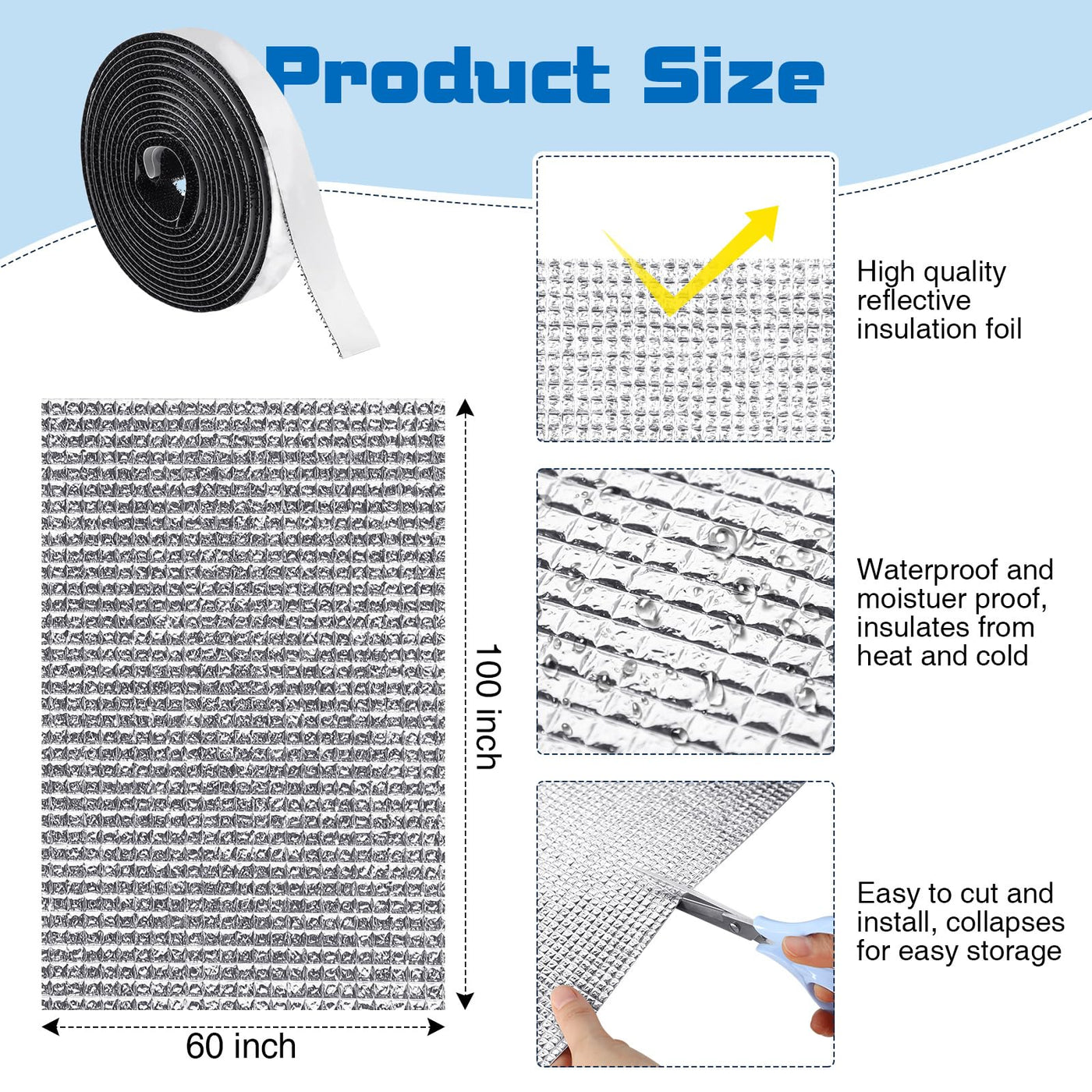 Frienda Double Rv Door Window Shade Cover Blackout Reflective Insulation Roll 78 X 40Inches Aluminum Foil Insulation Kit For Rv