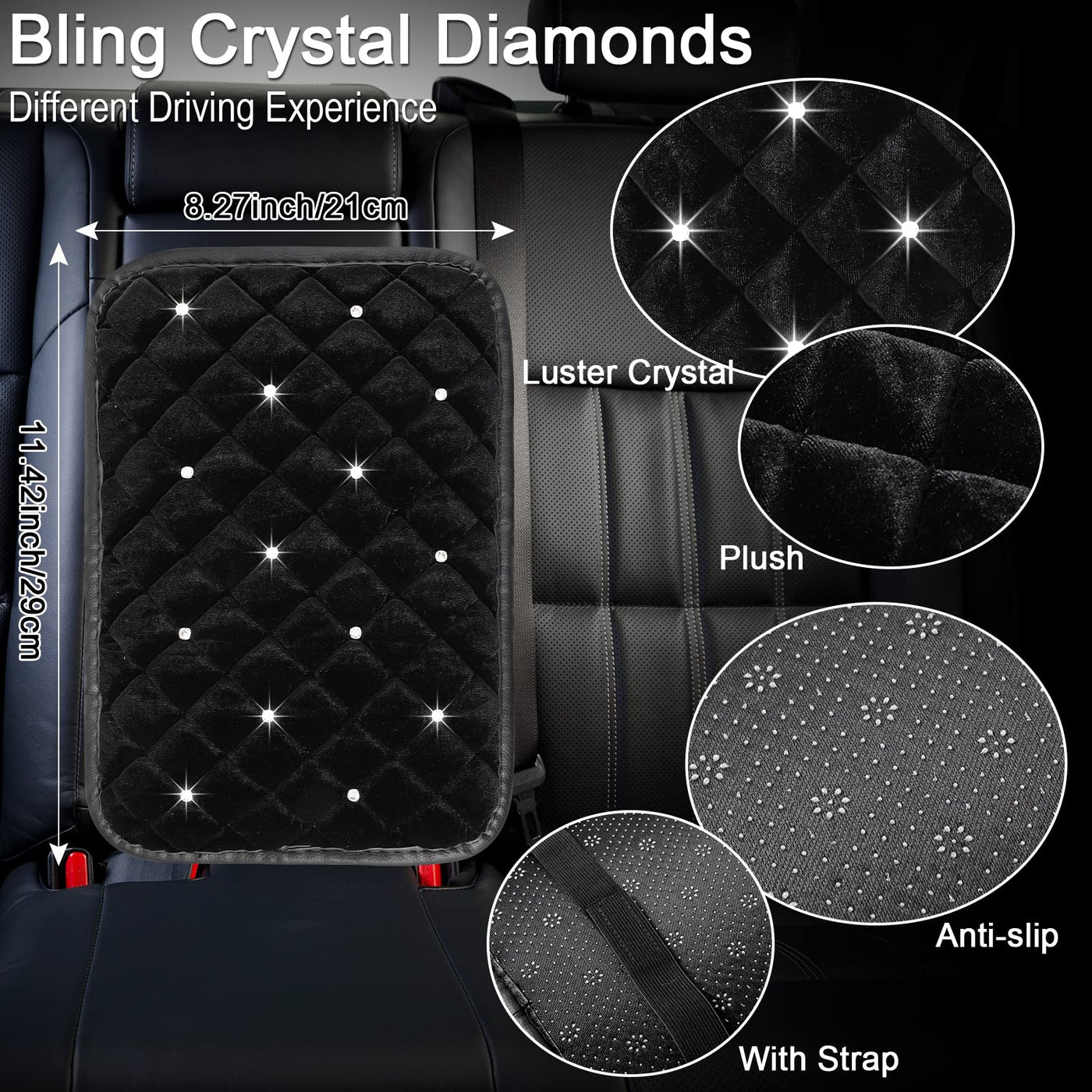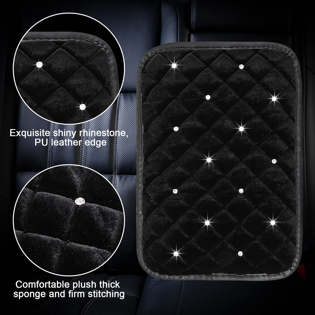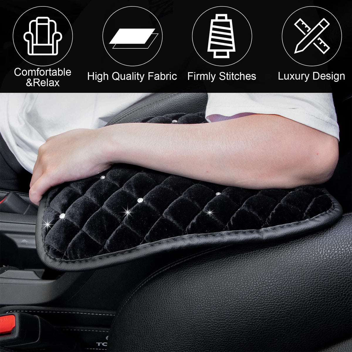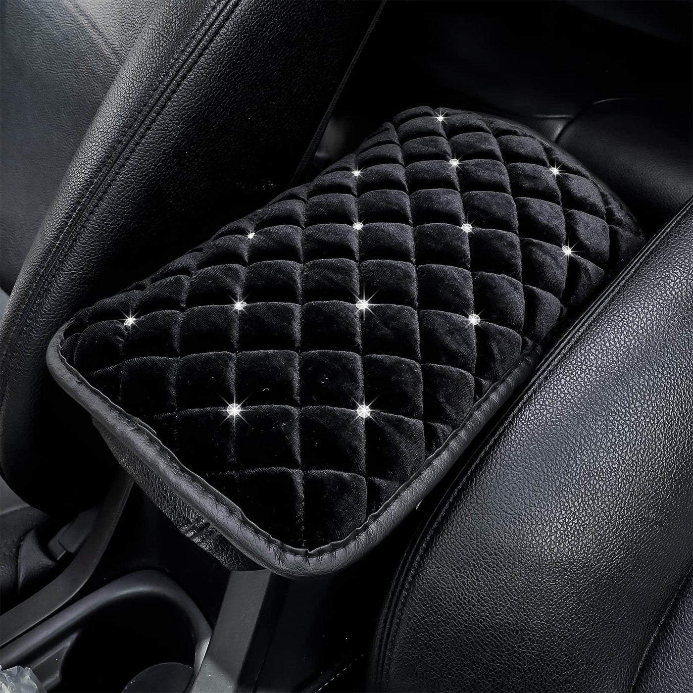 Frienda Furry Armrest Cover Auto Center Armrest Cover Car Soft Console Pad, Real Sheepskin Wool Soft Fluffy Auto Center Console Cover for Most Car Decoration Protector (Black, Diamond Style)