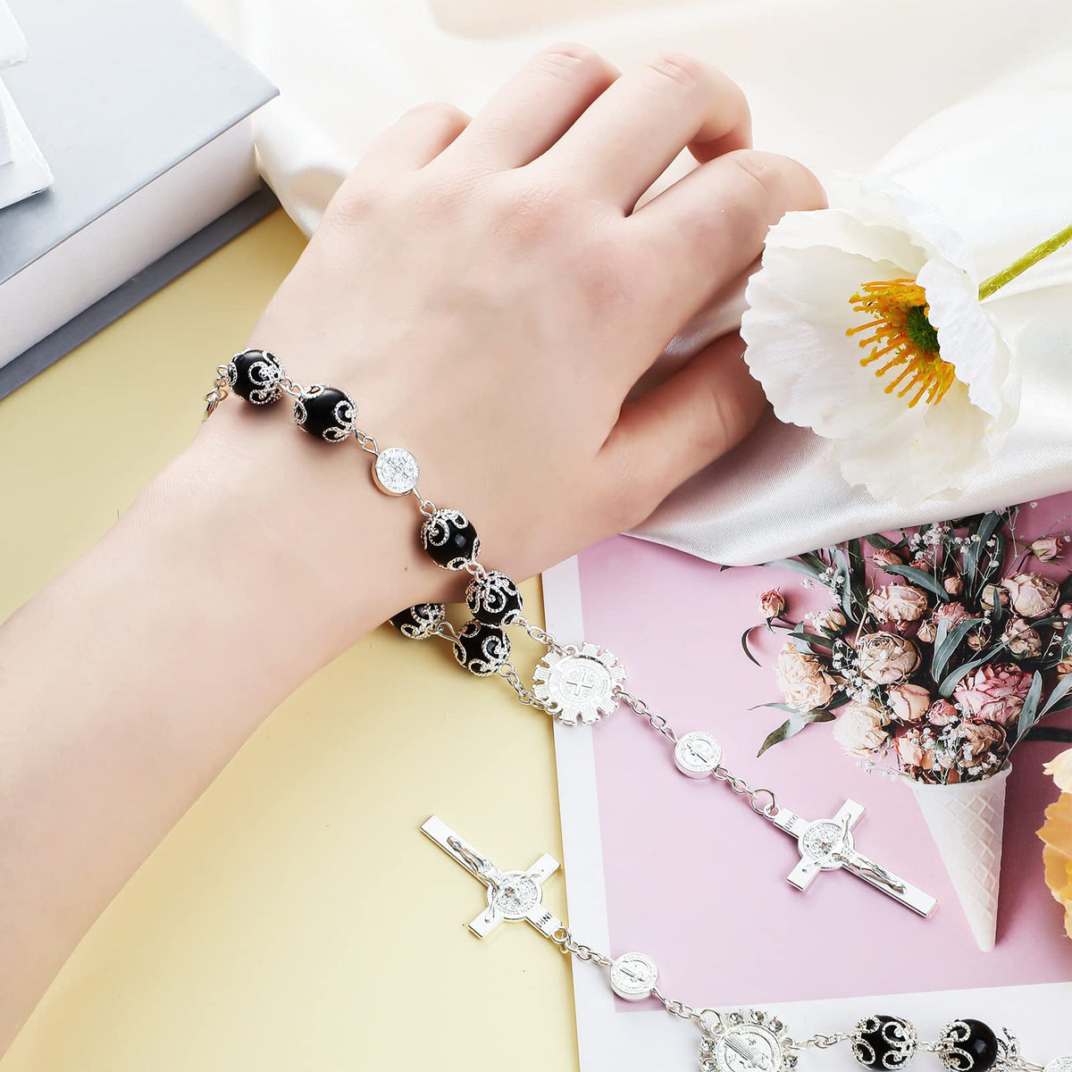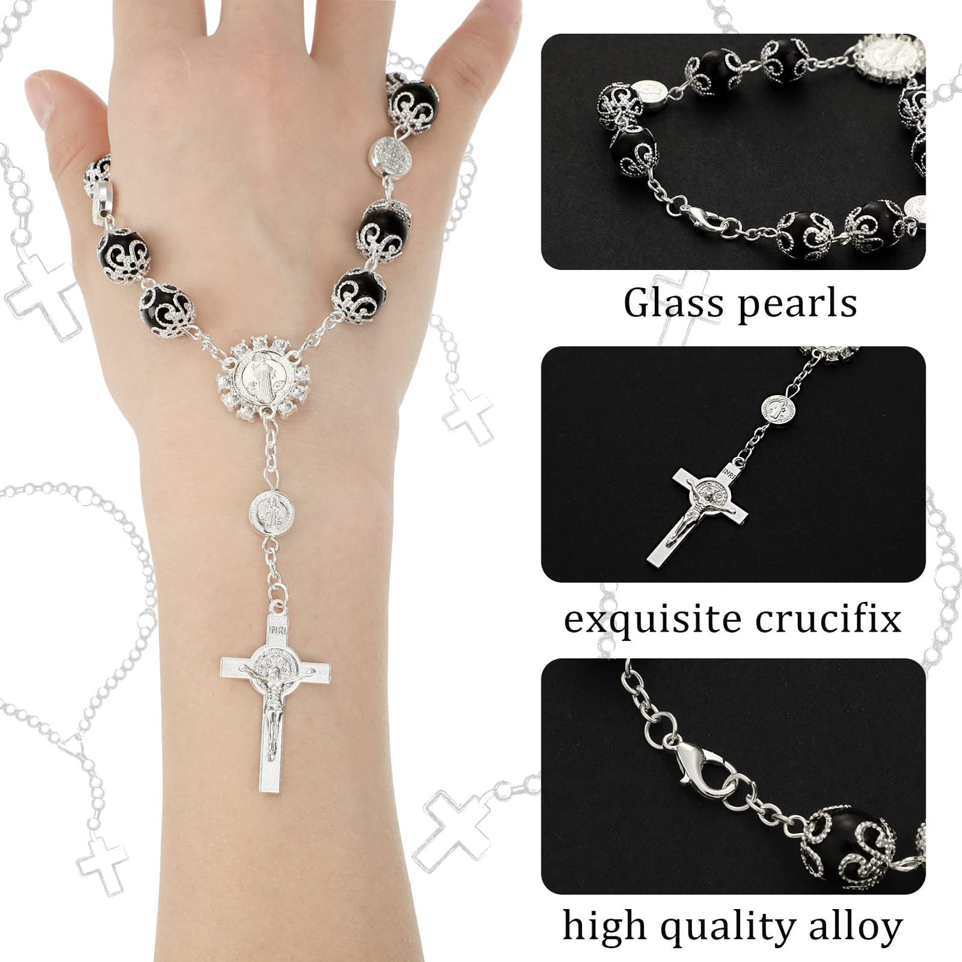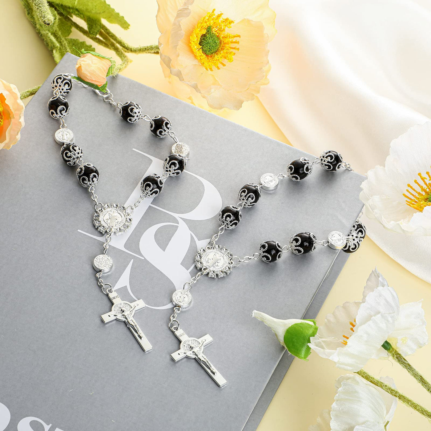 Frienda Saint Benedict Car Rosary 2 Pcs Rearview Mirror Auto Rosary Hanging Personalized Car Cross Blessing Catholic Medal For T