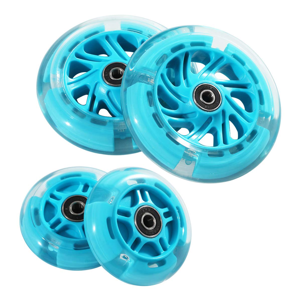 Front 120Mm & Rear 80Mm Light-Up Flashing 3-Wheeled Kid Scooter Replacement Wheels, Complete Wheels Set For 3-Wheeled Kid Push S