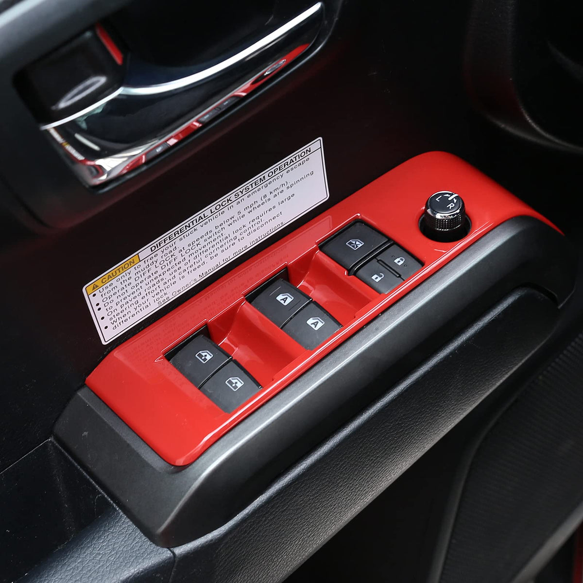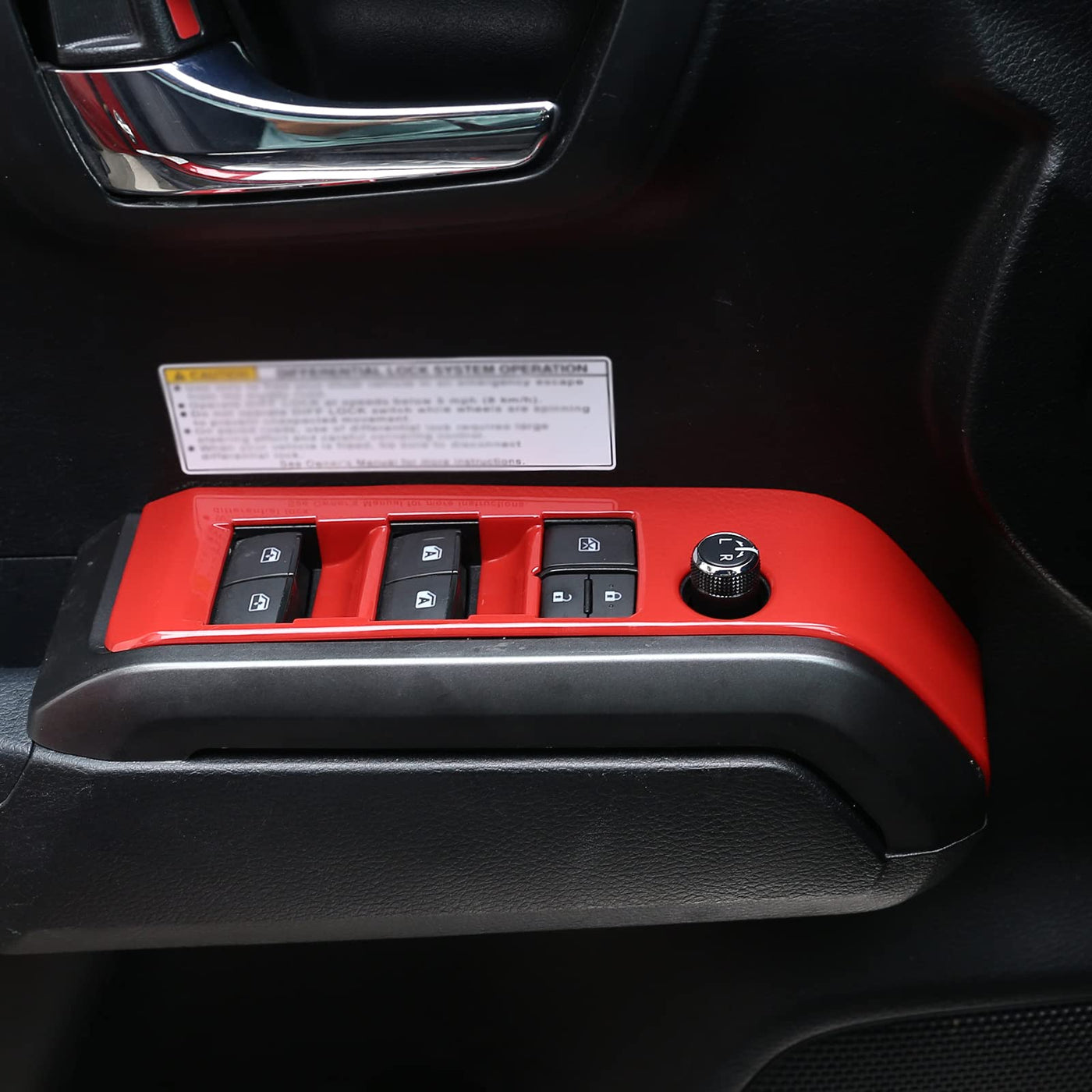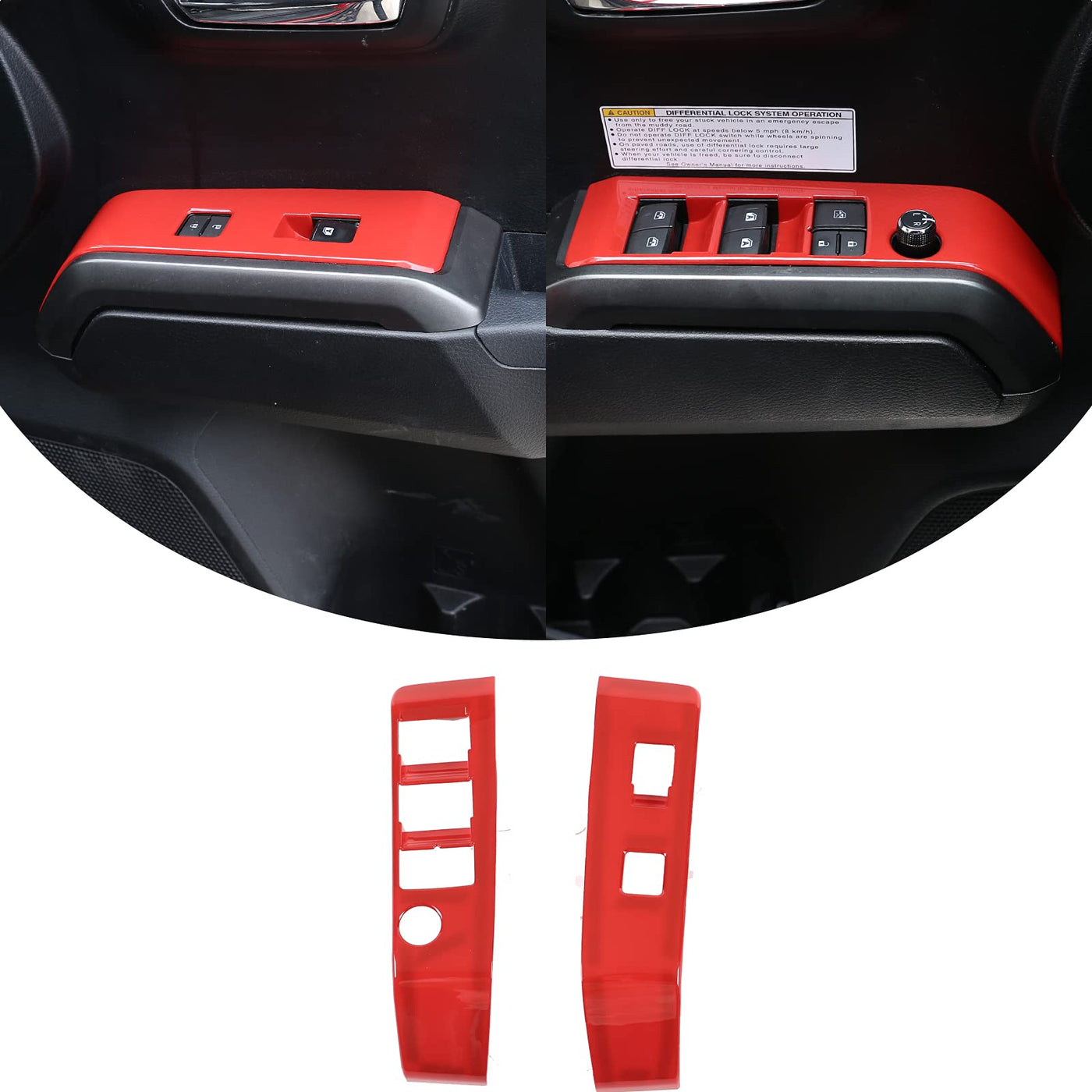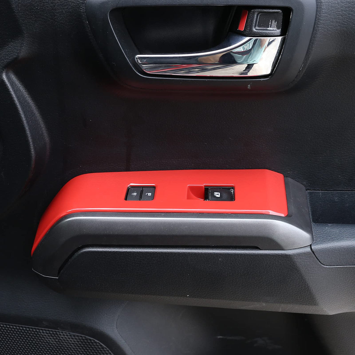 Front And Rear Doors 2Pcs Look Interior Door Armrest Window Switch Panel Cover Trim For Toyota Tacoma 2016 2017 2018 2019 2020 2021 2022 (Red,Front,)
