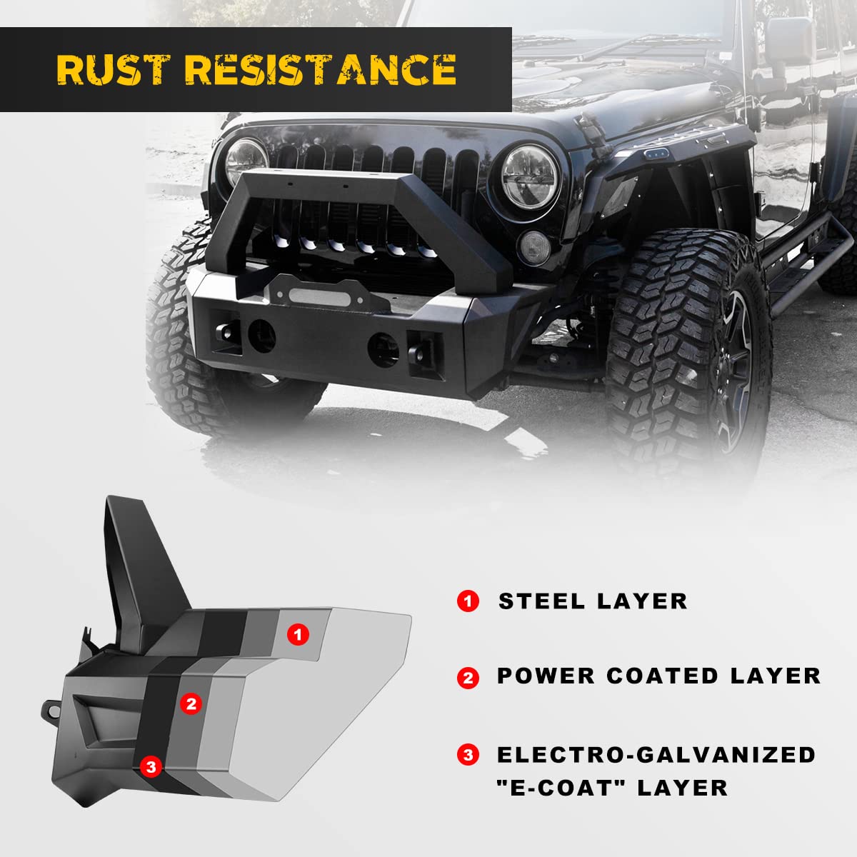Front Bumper For Jeep 2007-2018 Wrangler Jk/Jku 4Wd 2Wd, Hawkley Full Width Bumper With Shackle Hole & Fog Lights Hole & Winch Plate Mounting, Off-Road Rock Crawler Bumper For Jk