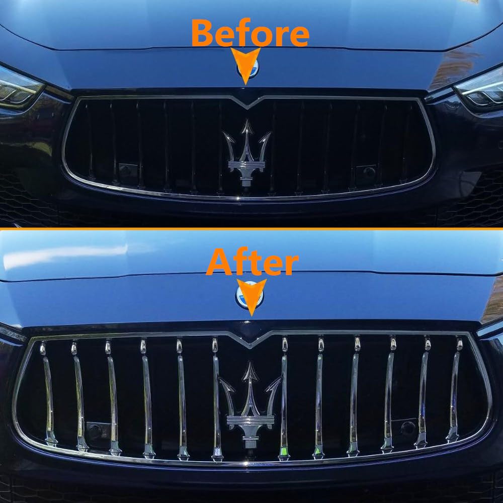 Q: Is the Front Grill Chrome Trim compatible with all Maserati Ghibli models?A: The Front Grill Chrome Trim is specifically designed to fit Maserati Ghibli models from the years 2013 to 2017. It ensures a perfect fit and enhances the aesthetic appeal of your vehicle.