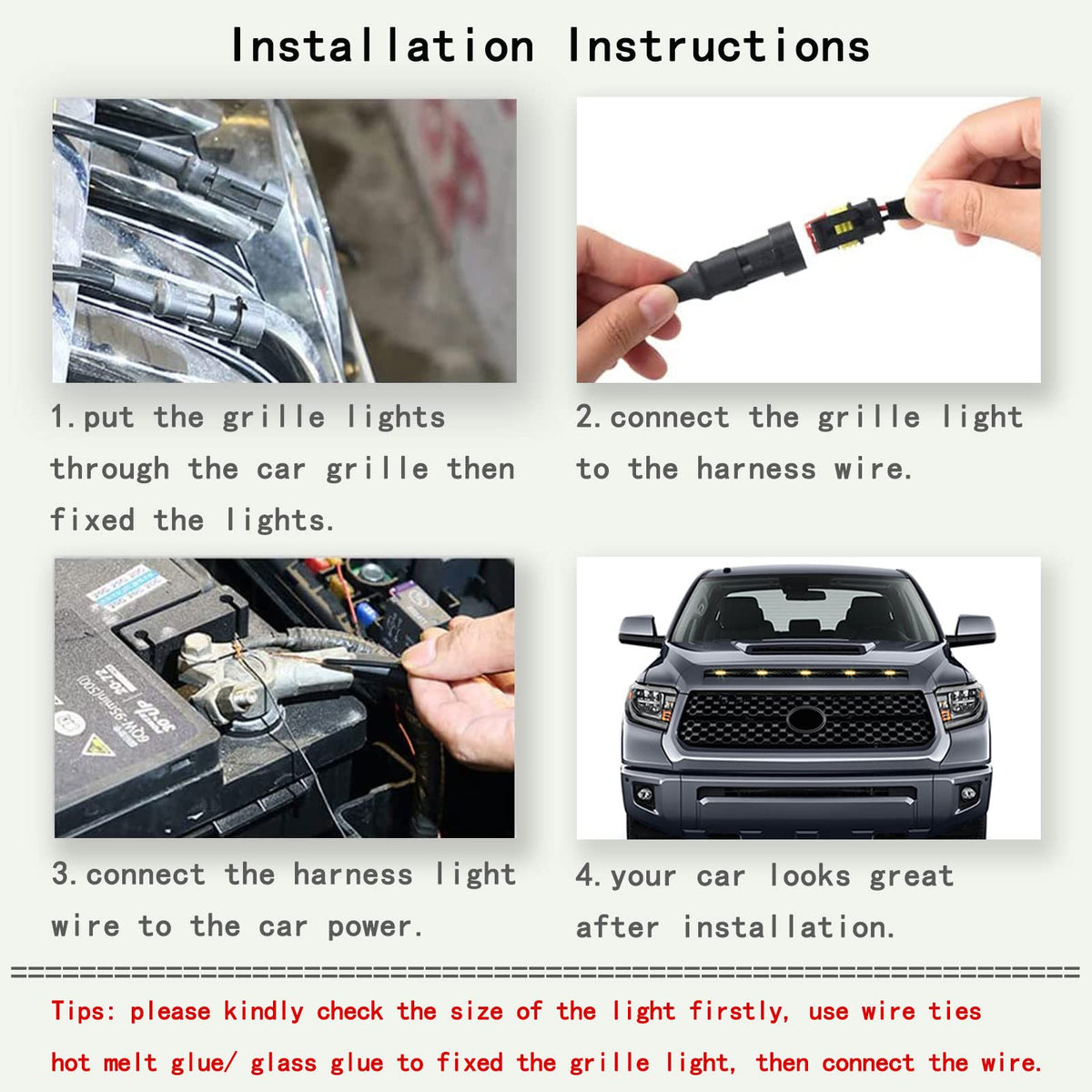 Some Of Automobile May Need To Be Punched During Installation, And Use Wire Ties Hot Melt Glue/ Glass Glue, Screws To Mount The Grille Light, Please Kindly Check The Size Of The Light And Your Car Grill Firstly.