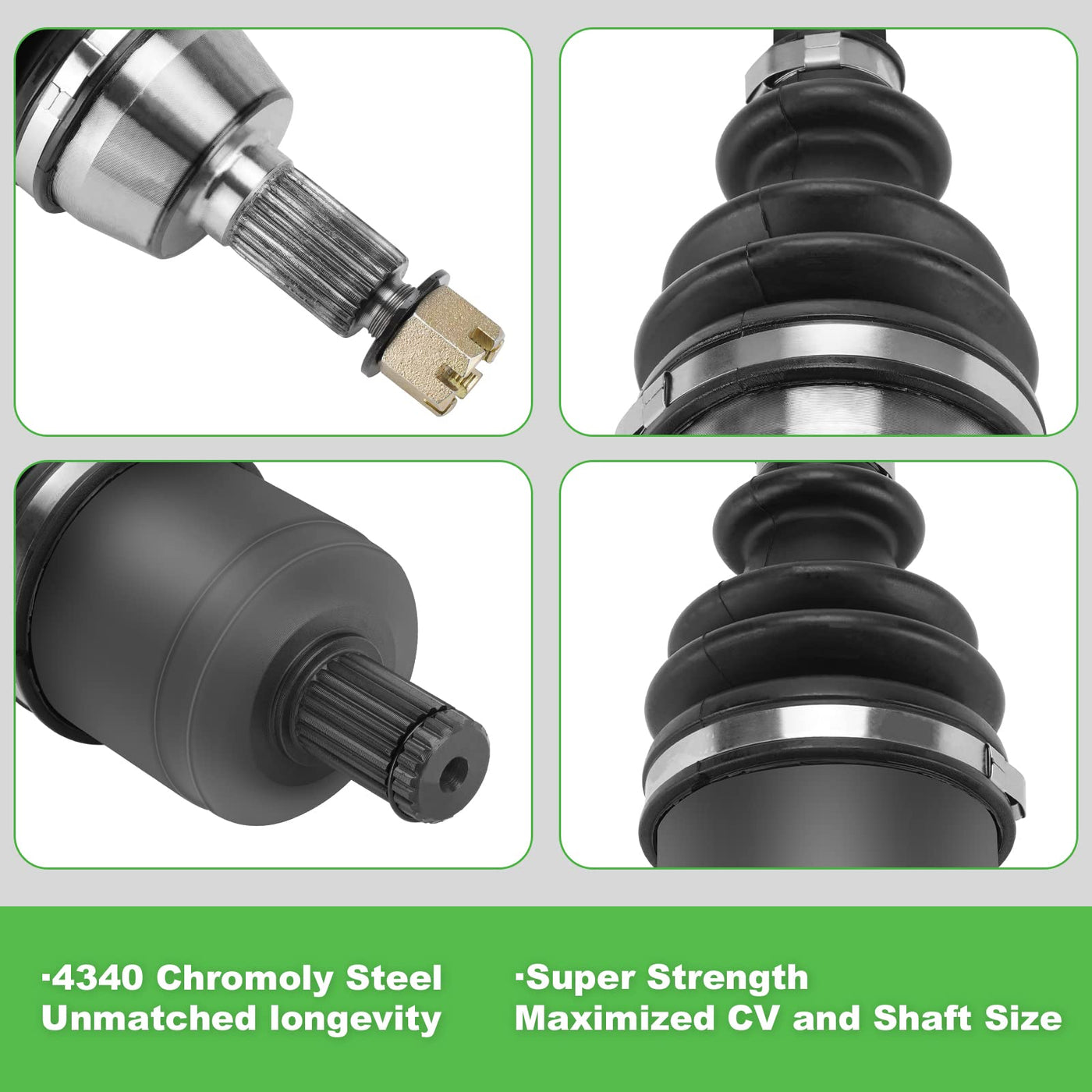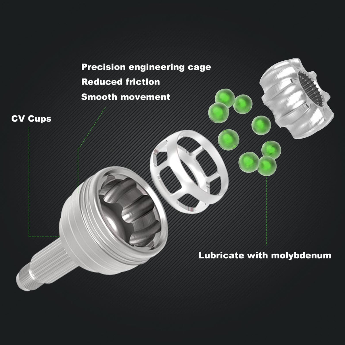 - Q: What makes this CV axle shaft more durable than others? A: This CV axle shaft is crafted from 4340 Chromoly steel, which provides unmatched longevity and strength. It features maximized CV and shaft sizes, high articulation angles, and a precision-engineered cage and housing that reduce friction.